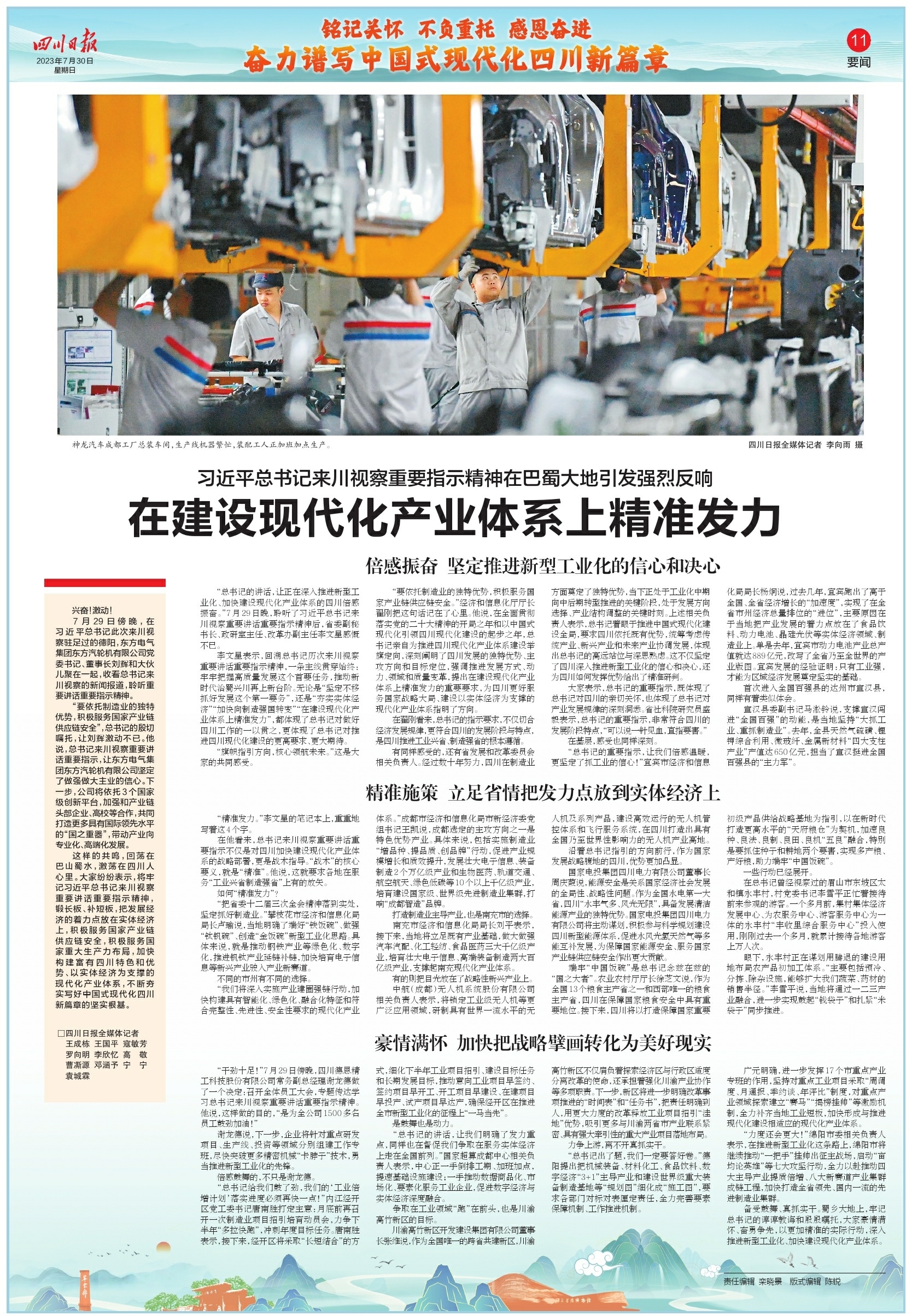 《习近平总书记来川视察重要指示精神在巴蜀大地引发强烈反响 在建设现代化产业体系上精准发力》(点击此处查看报道)