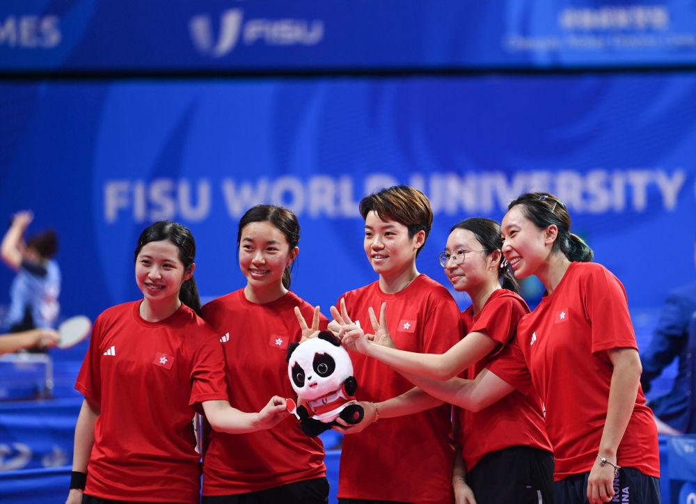 中国香港队前一日两连胜后,当天与中国澳门队同场竞技,最终3:0获胜挺进八强。“之前在很多学生运动会上和澳门队相遇,今天她们每个人发挥都很好。”中国香港队的林依诺说,“我们全队都希望能够在大运会赛场上享受比赛,去发挥自己最好的技术,努力冲击奖牌。”