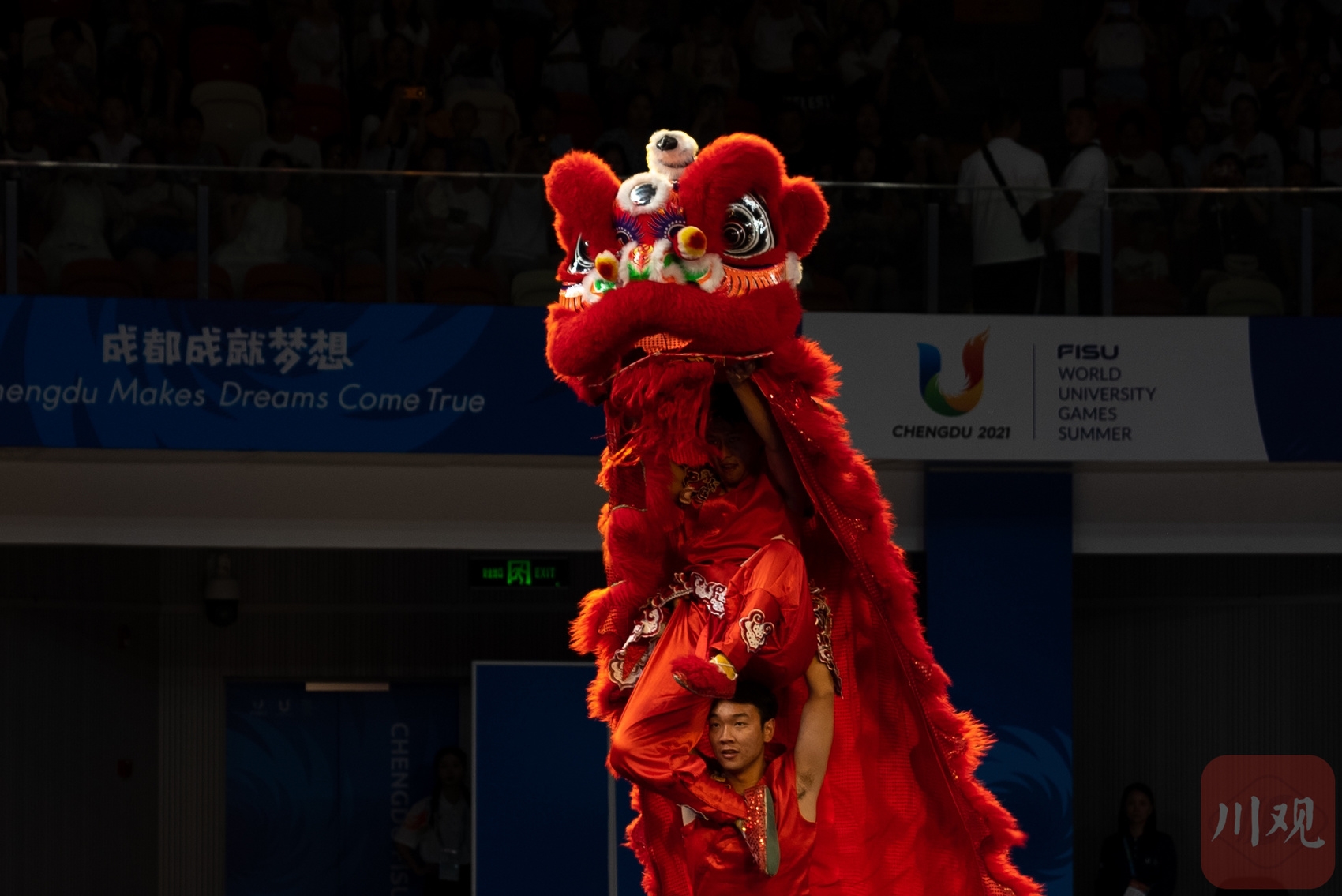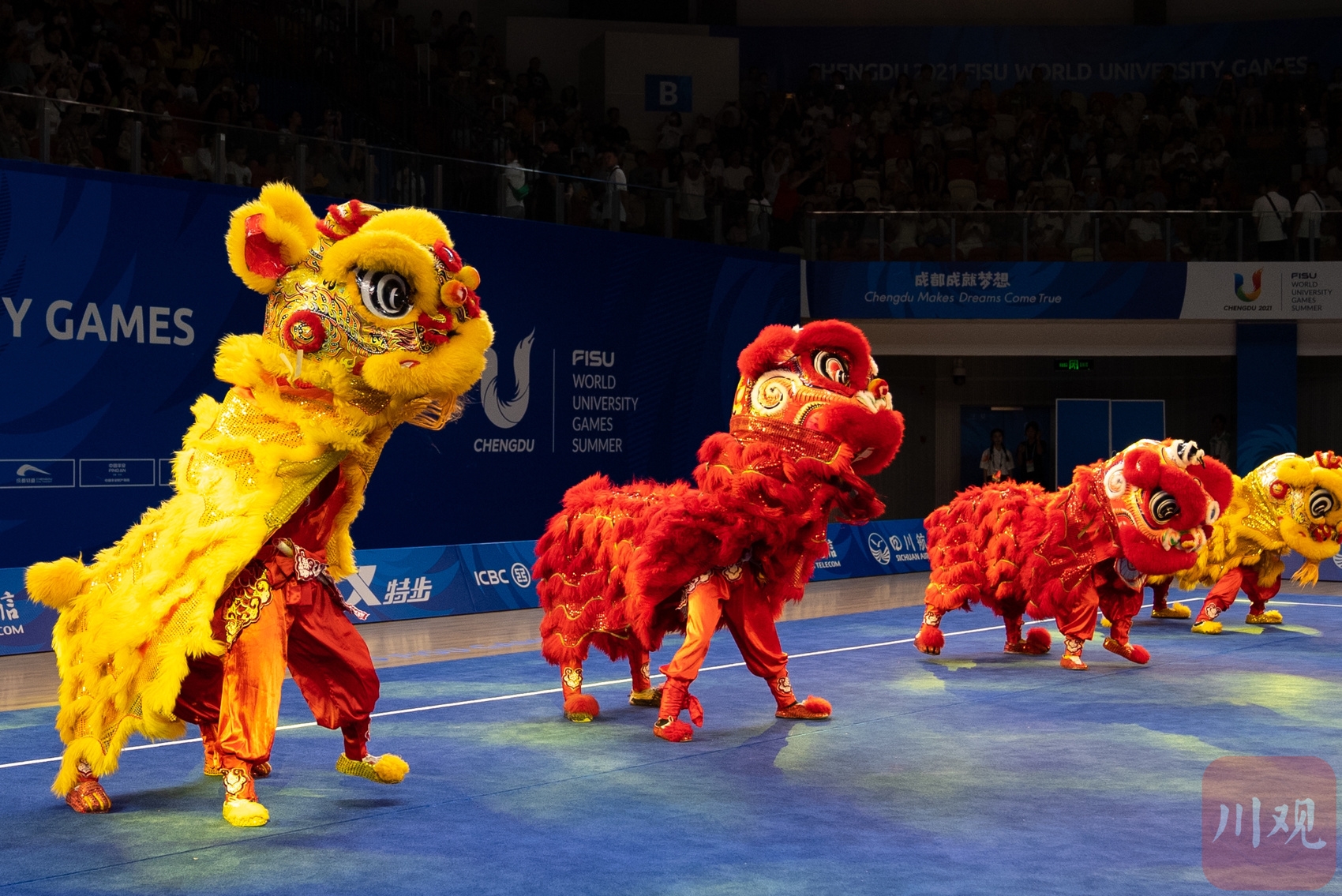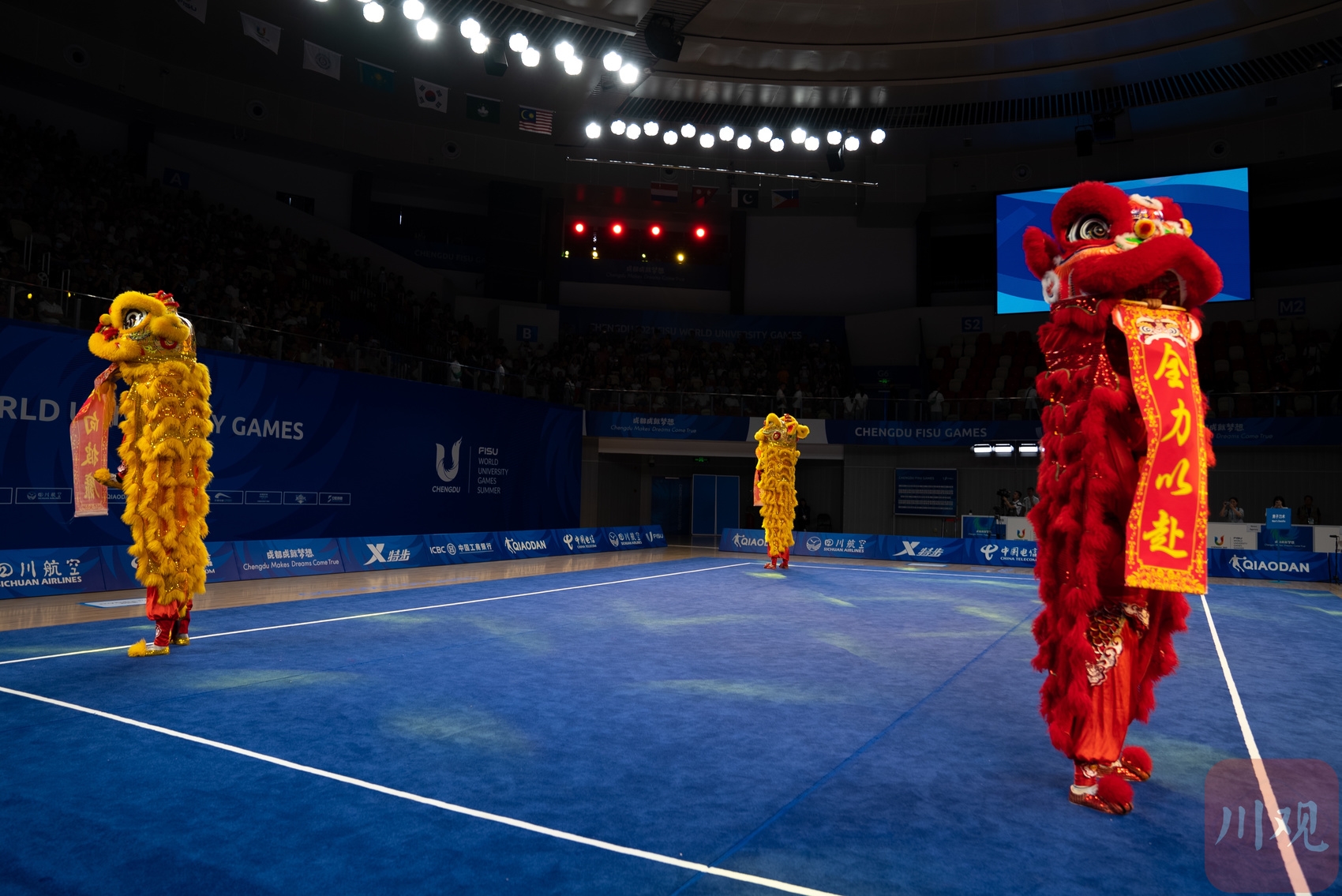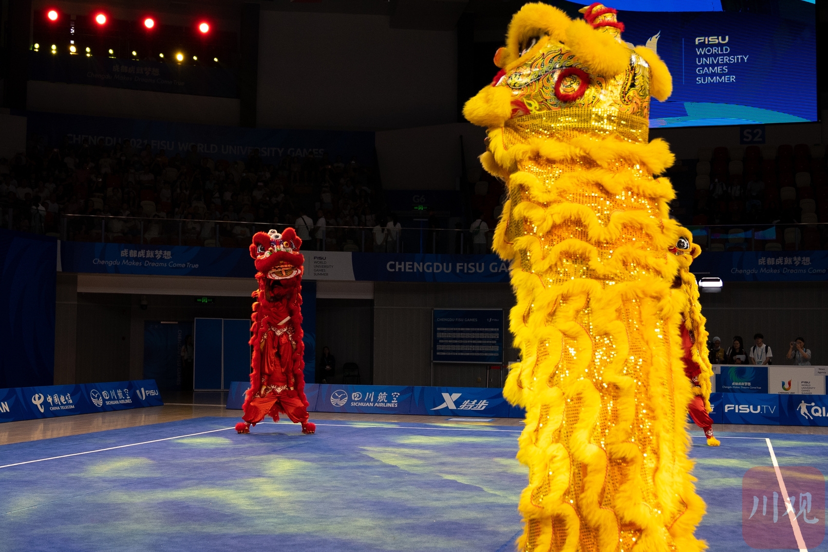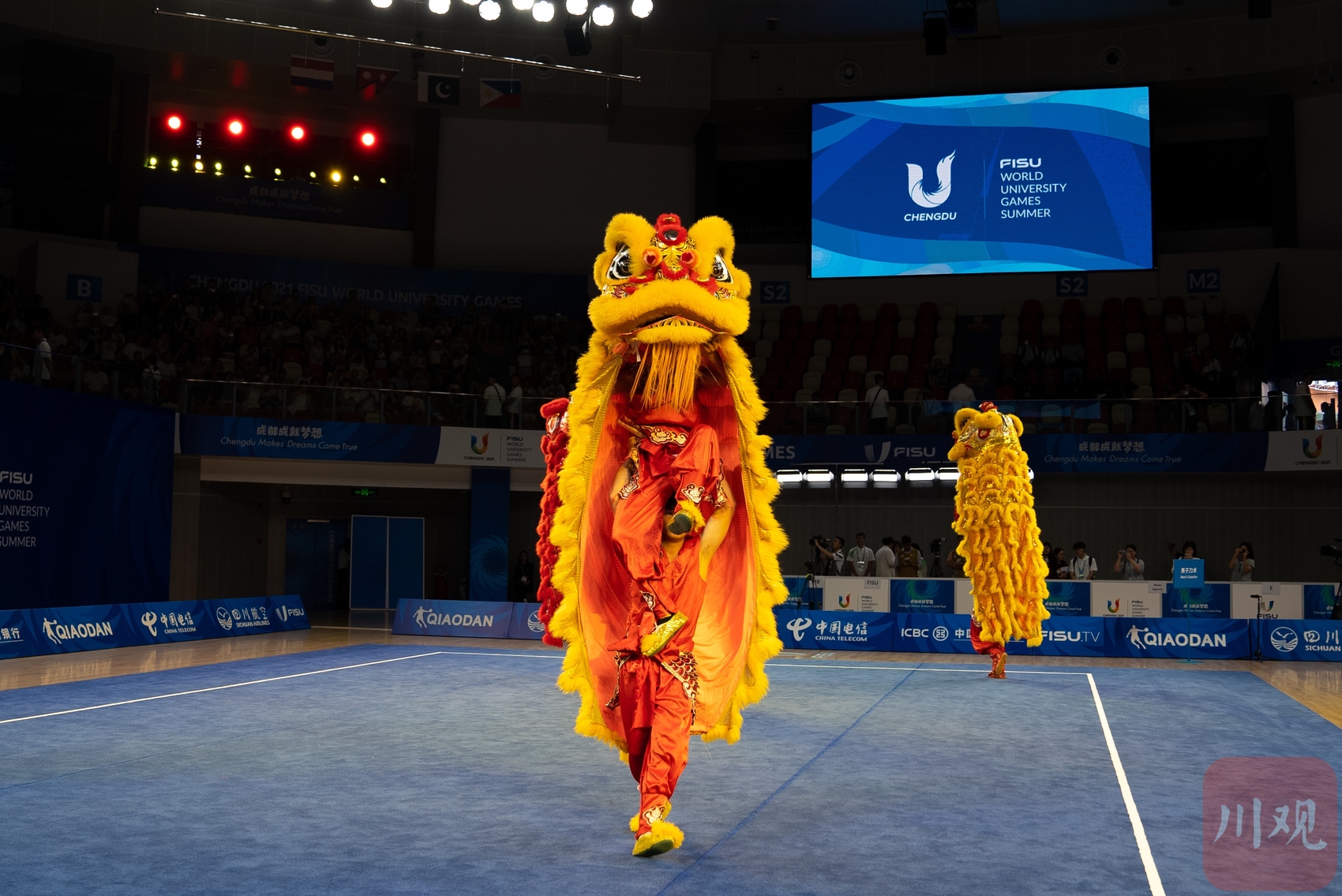 7月30日下午,成都大运会武术项目赛后,一段中国传统的民间艺术——舞狮表演将现场氛围拉满。