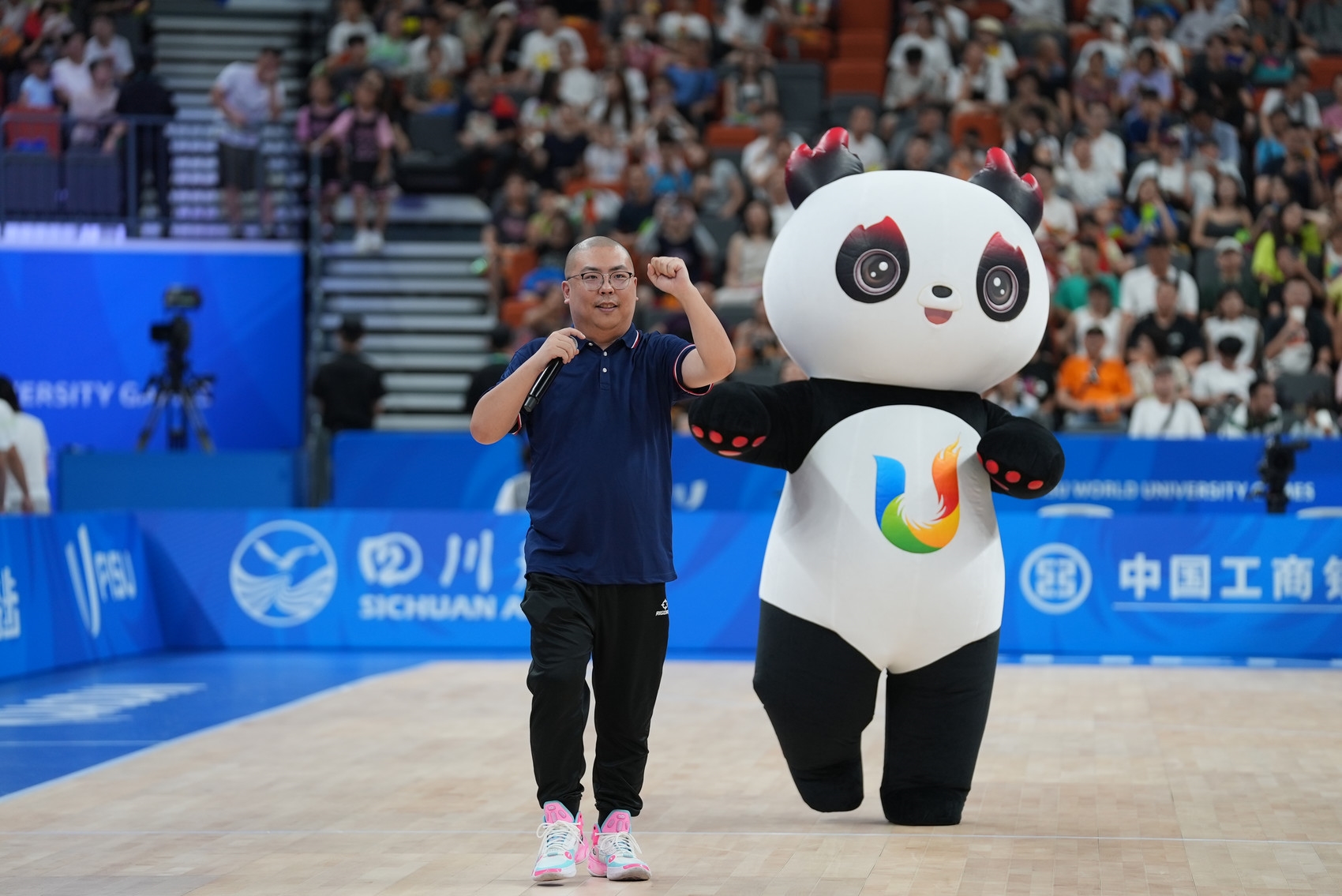 成都大运会篮球项目比赛正如火如荼进行。不少观众注意到,每场比赛赛前、赛中,总有一位主持人为现场实时播报比赛进程;更重要的是,还负责调动观众情绪,为双方球员加油助威,带领吉祥物“蓉宝”与大家互动。这个场上的“气氛组”角色叫做MC,即“麦克风控制者”(Microphone Controller)。