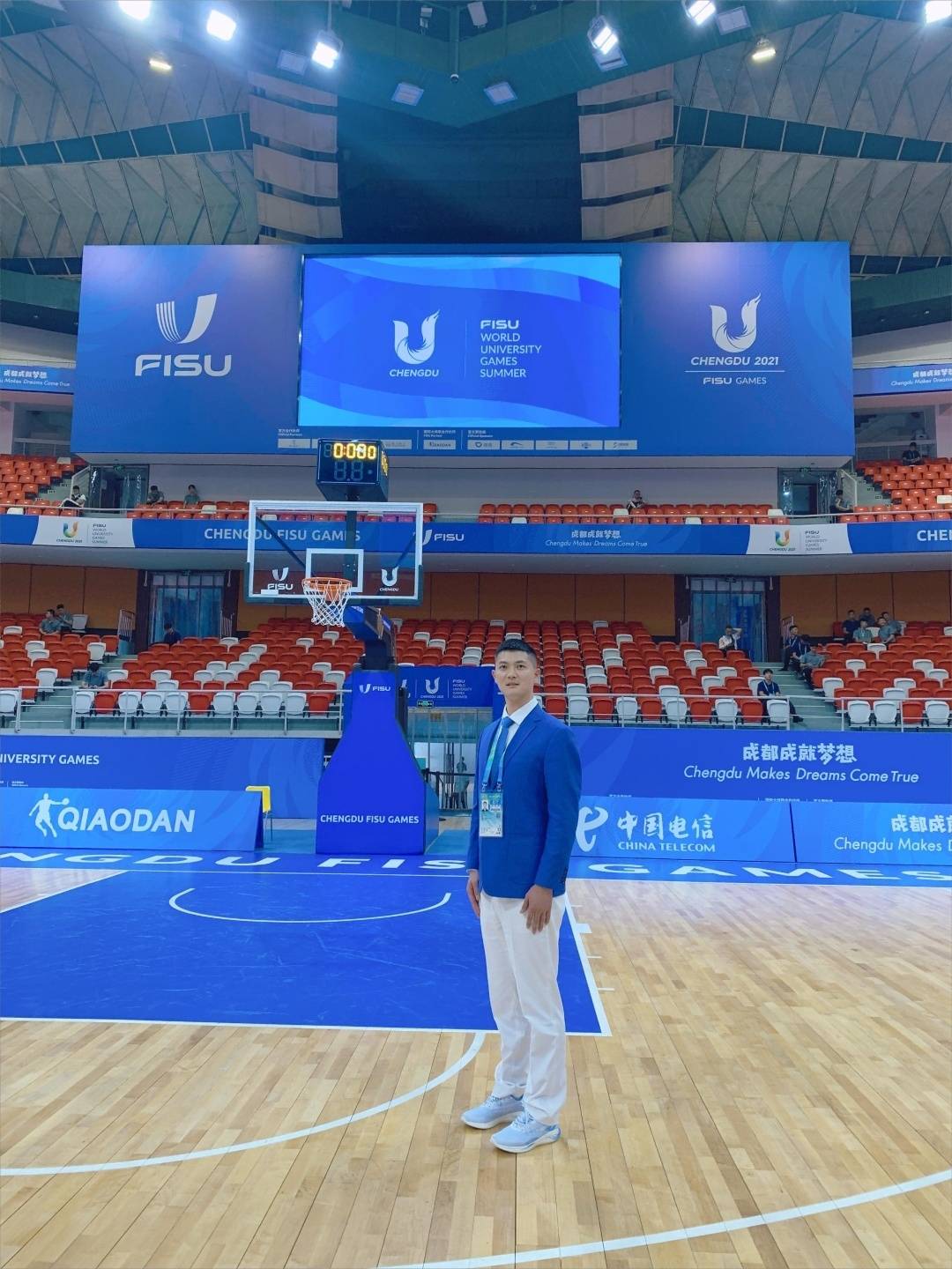 江宇航,国家一级篮球裁判员,在此次大运会担任国内技术官员,负责省体育馆赛区技术统计工作。他先后担任过四川省“百城千乡万村·社区”篮球比赛全省总决赛裁判、四川省“贡嘎杯”篮球比赛总决赛裁判、CUBAL全国女子24强赛技术官员及四川省第十四届运动会篮球比赛裁判,多次获得优秀裁判员称号。