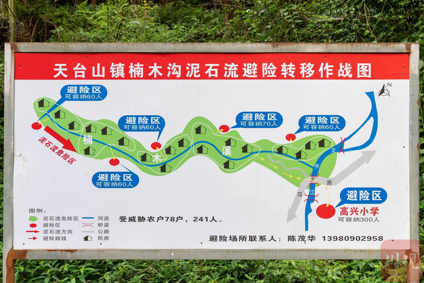 楠木溪位于邛崃市天台山镇高兴村,是一条长约4公里的狭长河谷,上游是海拔2000多米的新山,下游是农家乐民宿聚集区,常住有200多名村民和游客,80%以上农户散居于溪流沟壑之中,是地质灾害隐患点,山洪发生率较高。