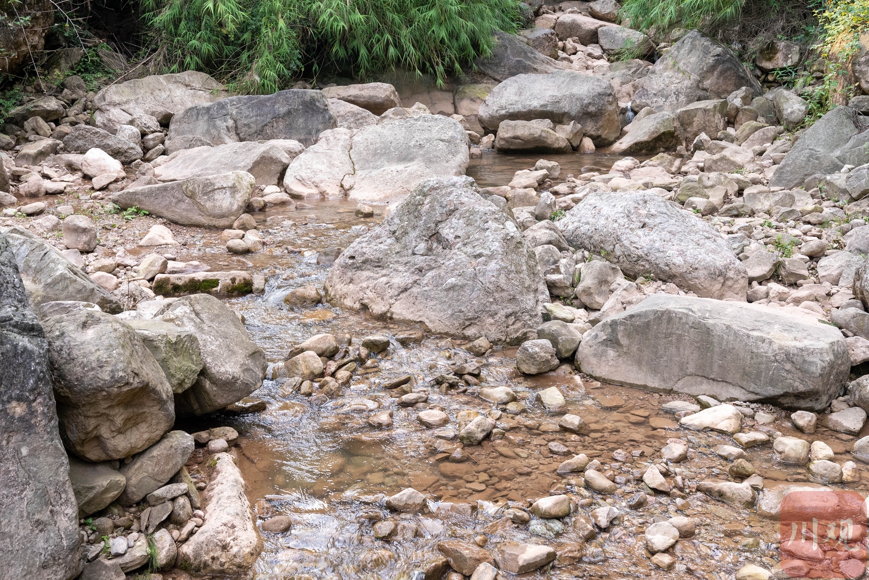 继续往上走,农家乐越来越少,无人居住,记者的手机也逐渐没了信号。楠木溪的溪流声越来越小,沟里散落着巨石,暗示这条小溪并不“温顺”。