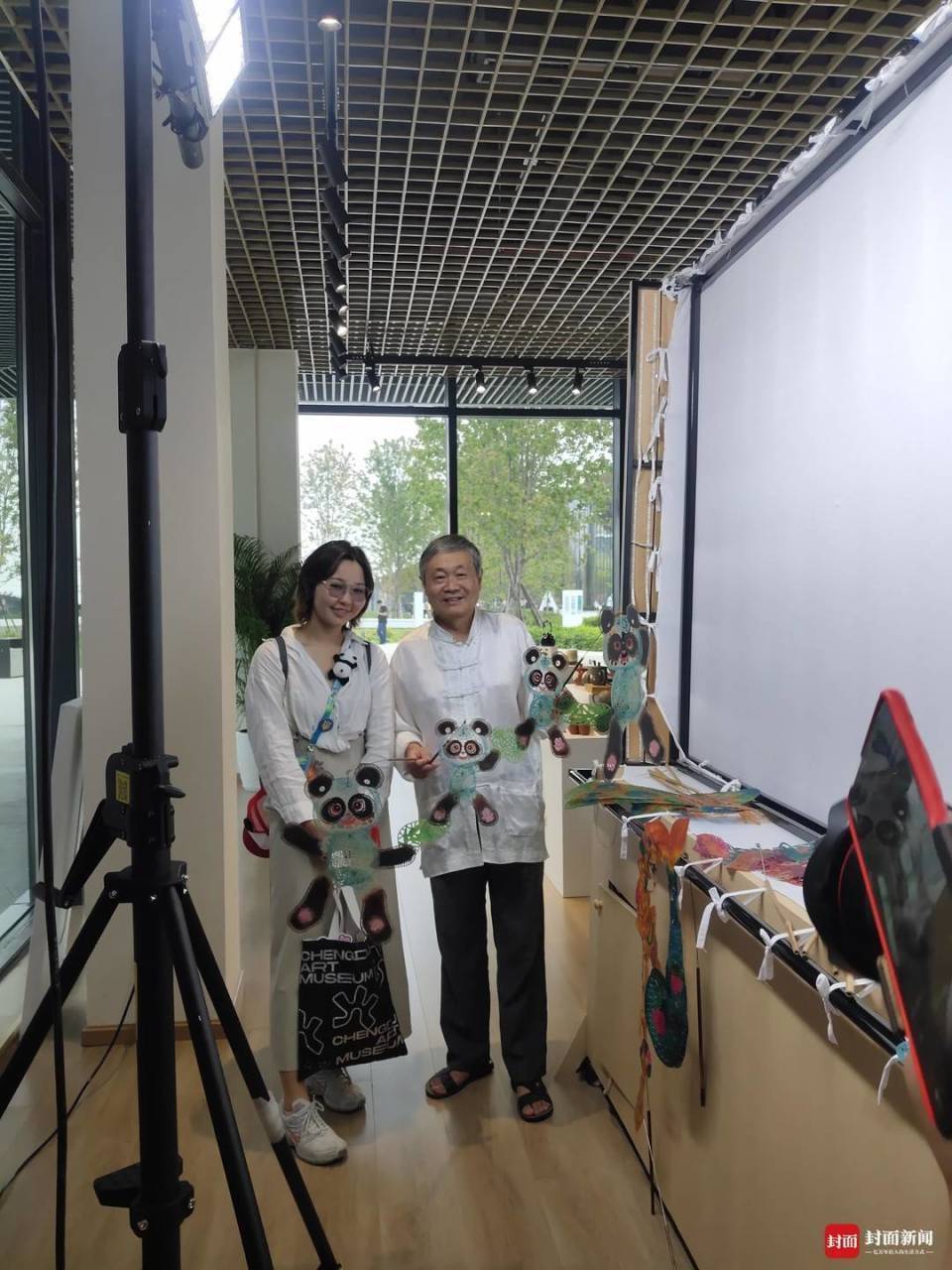 “创意成都”展示了成都皮影和来自成都博物馆、金沙遗址博物馆、杜甫草堂博物馆、武侯祠博物馆的精美文创。游客可以坐下来观看一出皮影戏,梦回童年时光。皮影灯箱里最不容错过的是一组清代的成都大皮影实物,三个人物形象风格传统,栩栩如生。代表团成员们在这里观看了成都市皮影戏非遗项目代表性传承人叶牧天的表演。一位代表团成员还同叶牧天一起表演了《欢乐的大熊猫》。