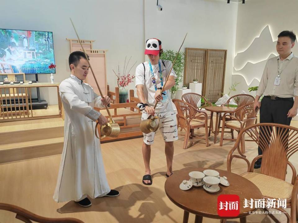 传承人现场展示、精心打造的“成都茶馆”、好玩有趣的文创产品……近日,位于天府艺术公园的成都非遗创意展示空间开门迎客,借成都大运会之际传播四川非遗文化。8月2日,来自波兰、蒙古国、新加坡三个国家的成都大运会代表团走进成都非遗创意展示空间,亲自体验传承千年的非遗技艺。