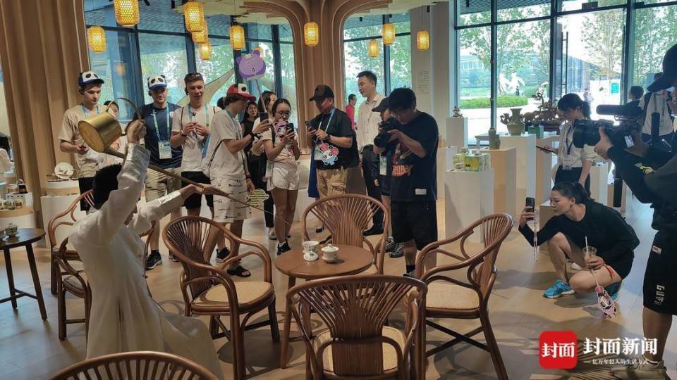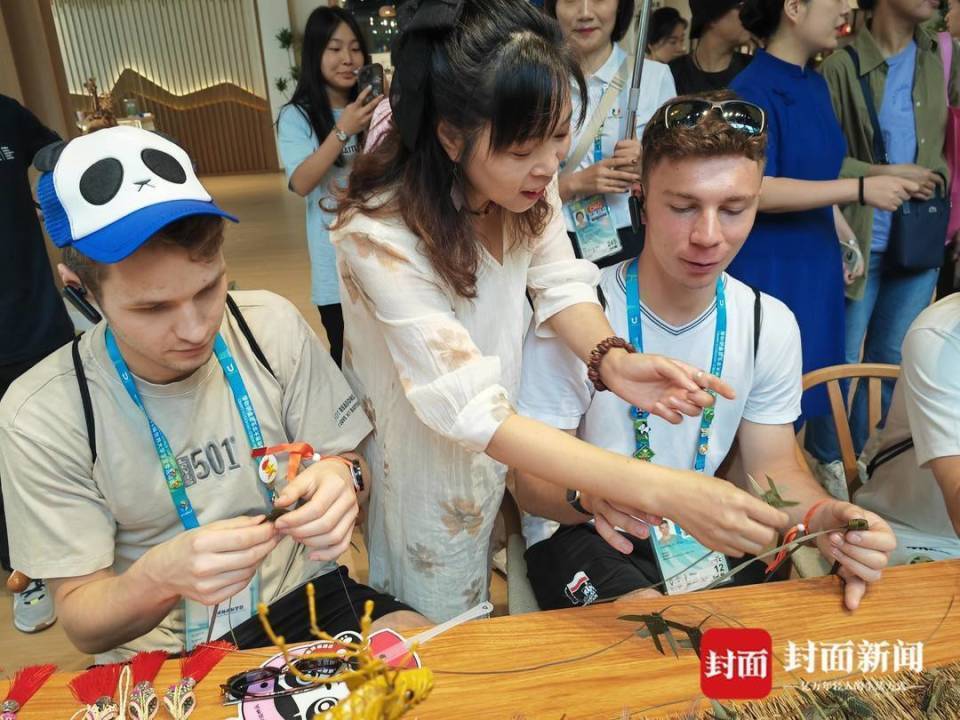 在“烟火成都”板块,代表团成员们观看了铜壶茶艺的表演,还亲自上手体验了茶艺文化。同时,皮影的生动有趣,传统蛋壳雕绘技艺的缤纷多彩,棕编的栩栩如生,都让现场代表团成员们跃跃欲试,纷纷上手体验和创作。记者从成都市非遗保护中心获悉,在成都大运会期间,“烟火成都”板块将在每天上下午分别开展一场非遗体验活动,市民游客可以在此体验棕编、蛋壳雕绘、剪纸、面人等项目,感受指尖上的艺术。