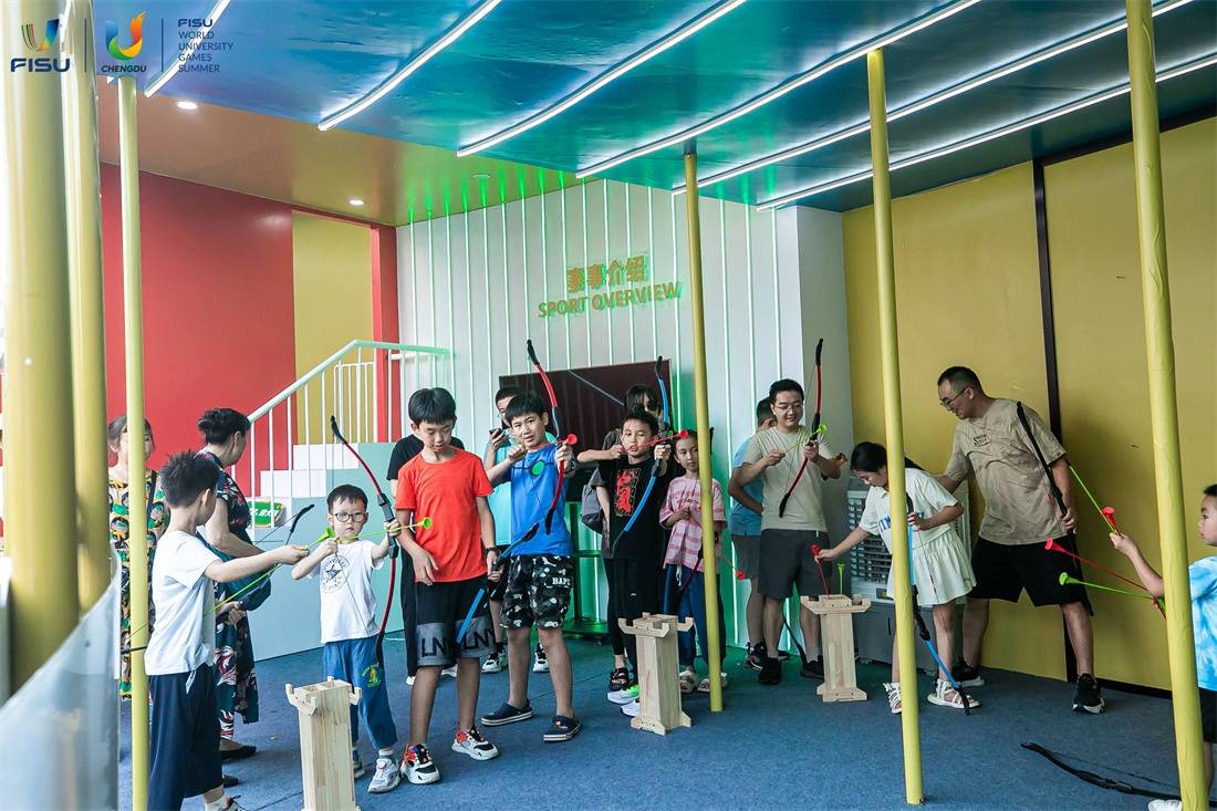 盛夏未央,精彩继续。当运动健儿在赛场奋力拼搏时,桂溪生态公园东区的“趣味运动会”同步举行。现场,市民与游客们纷纷体验射箭、篮球、乒乓球、羽毛球等大运会赛事项目。市民刘先生专程带着儿子一起前来,“在公园里感受大运会,感觉很新奇,也很有意义。”