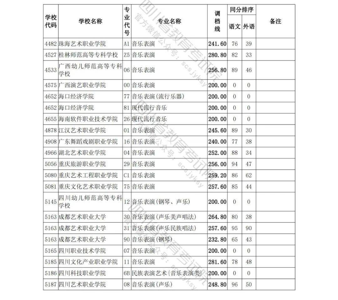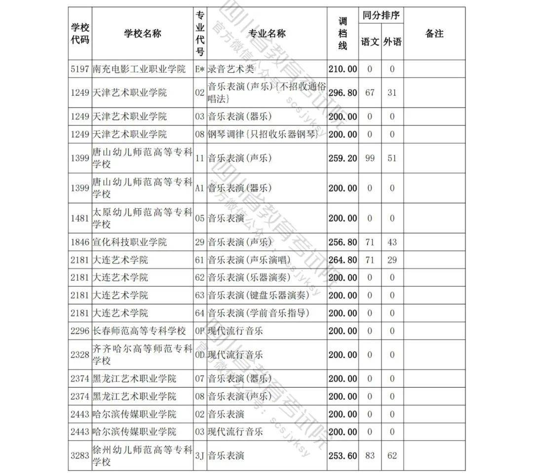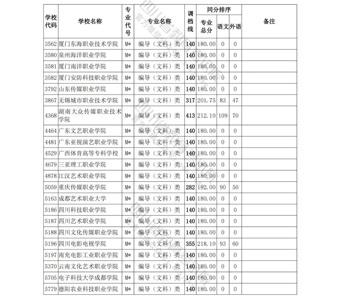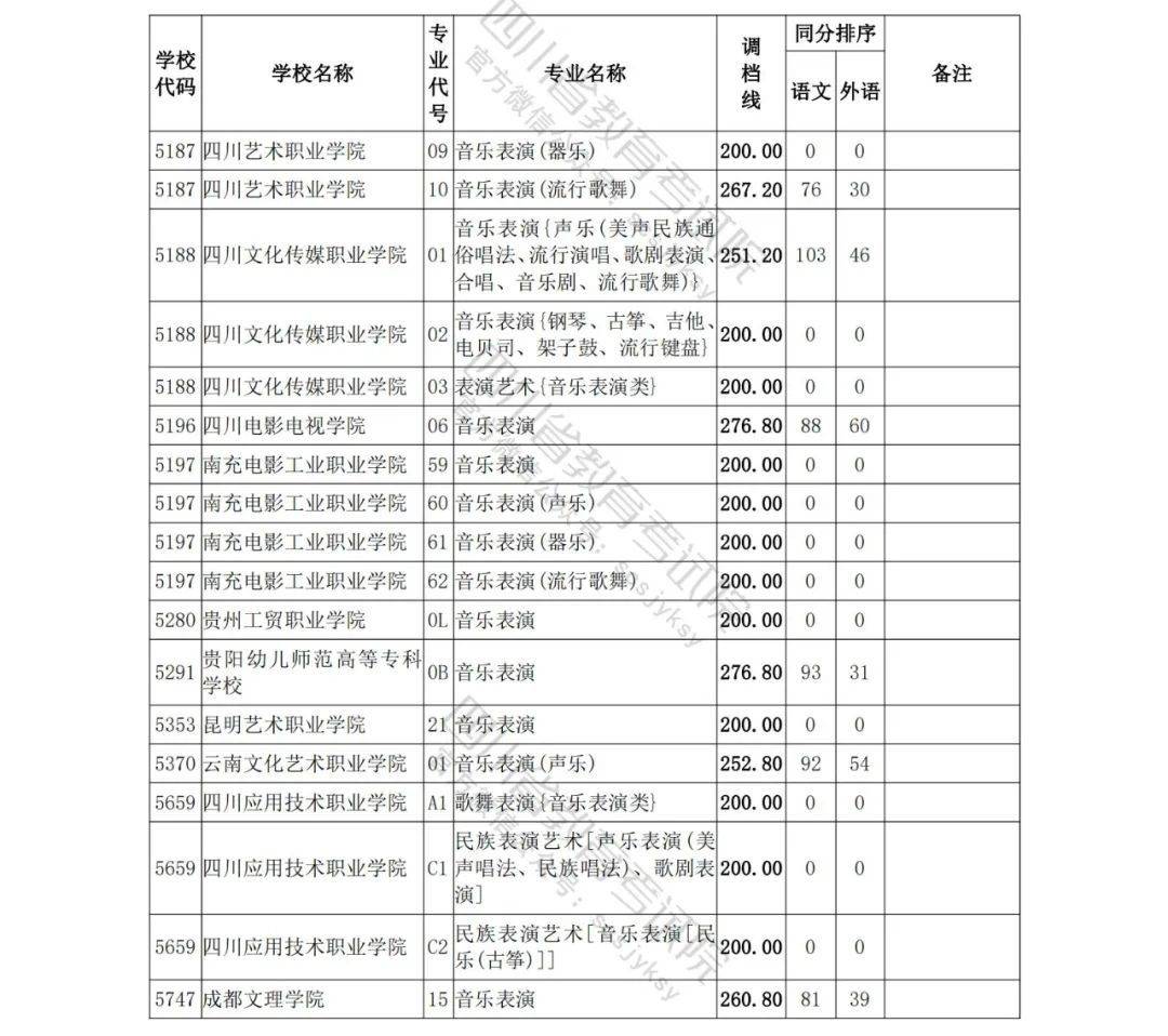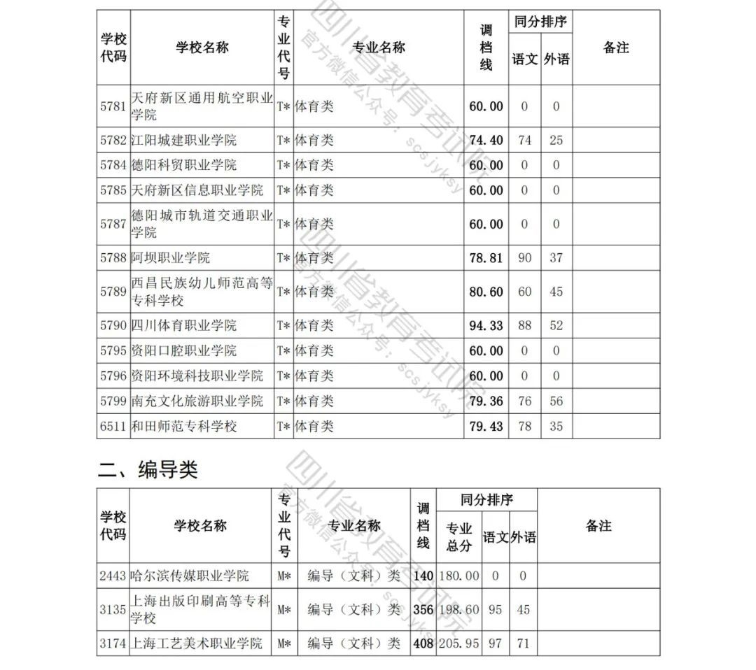 四川省2023年普通高等学校艺术体育类专业招生专科批调档线出炉