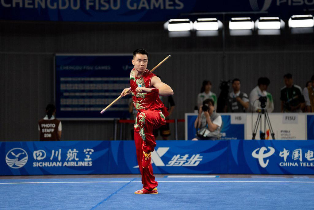曹茂园在成都大运会武术项目男子南拳比赛中 (新华社供图)