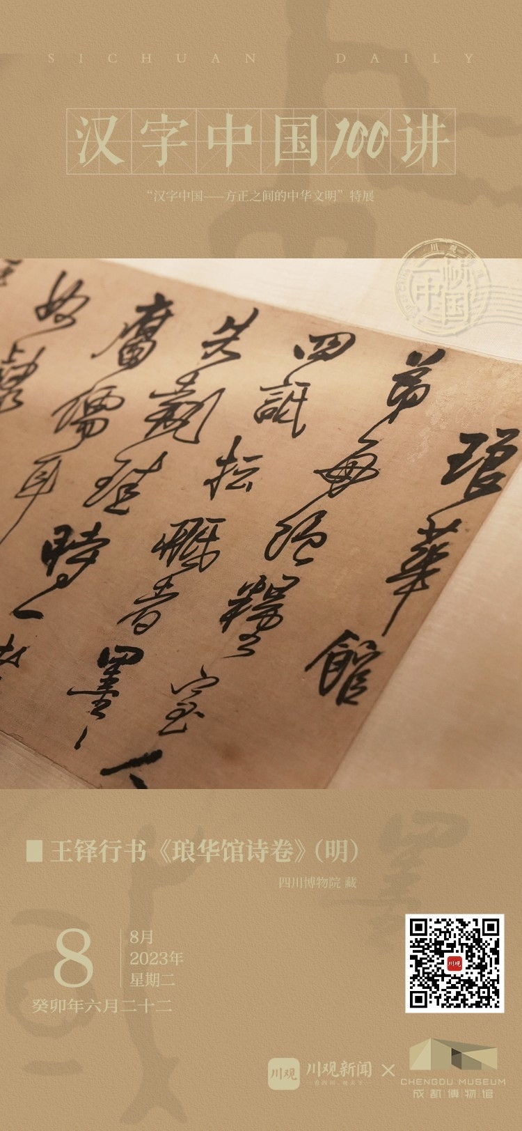 今天为大家介绍的这件文物是明末清初书法家王铎的行书《琅华馆诗卷》。王铎与董其昌并称“南董北王”,在艺术上,王铎主张“师古”,但他又认为“善师古者不离古、不泥古”,也就是说要师法传统、从古人作品中汲取灵感,但又不能拘泥于传统。
