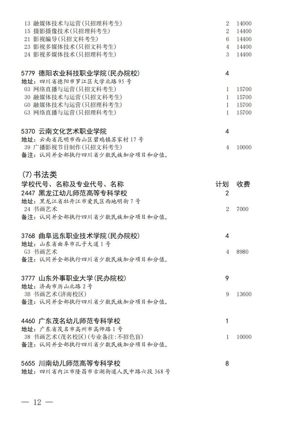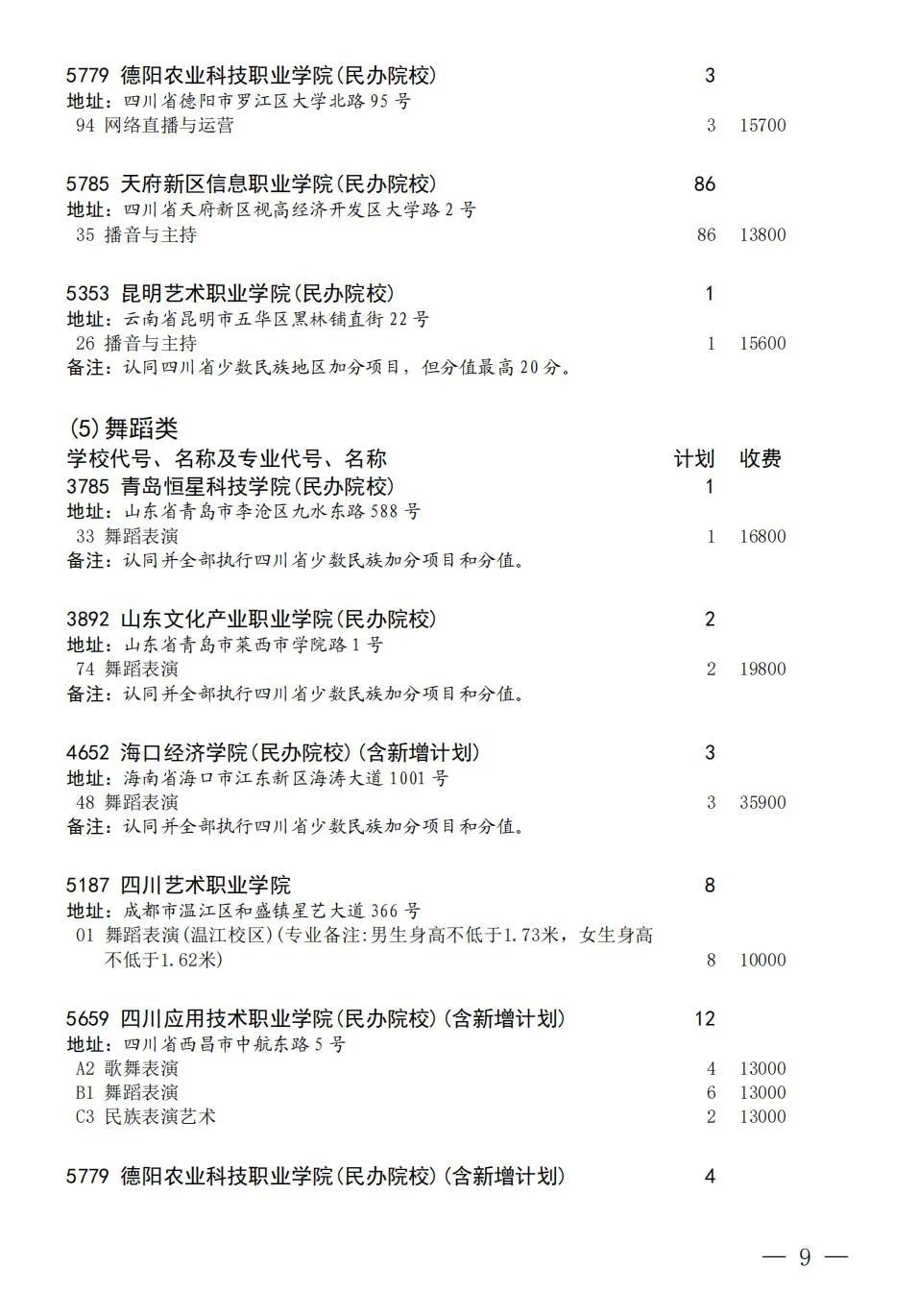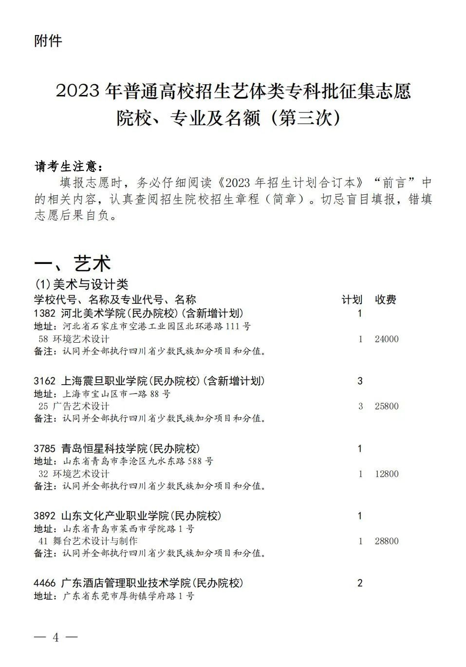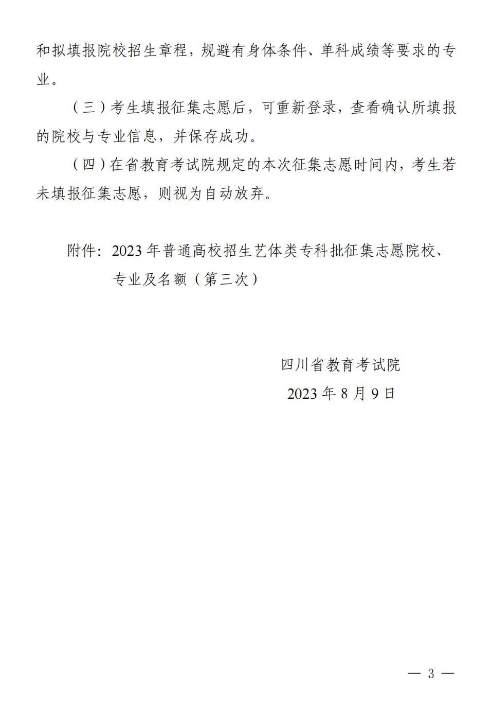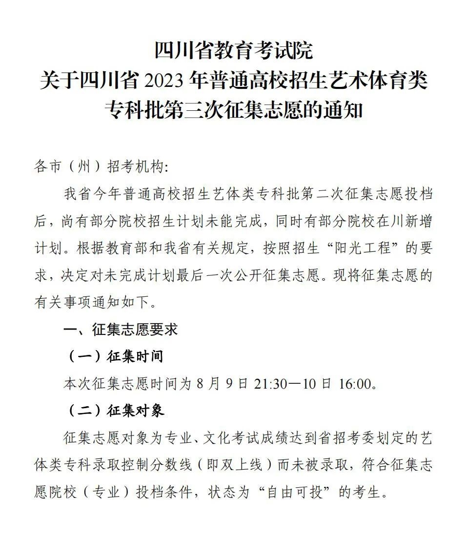 8月9日21:00—10日16:00 四川艺术体育类专科批第三次征集志愿