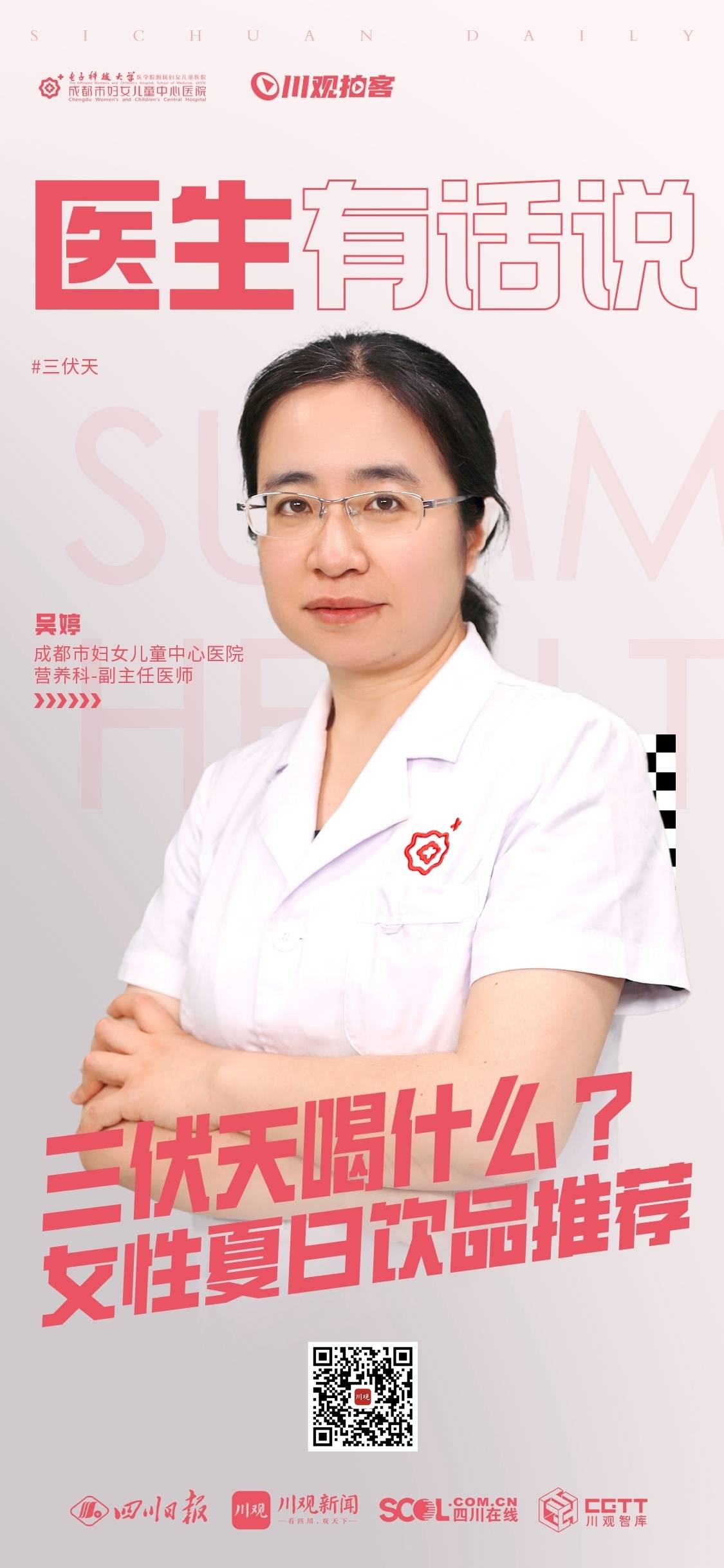 今天,来自成都市妇女儿童中心医院营养科的副主任医师吴婷,就跟女性朋友推荐一些适合三伏天饮用的汤饮。