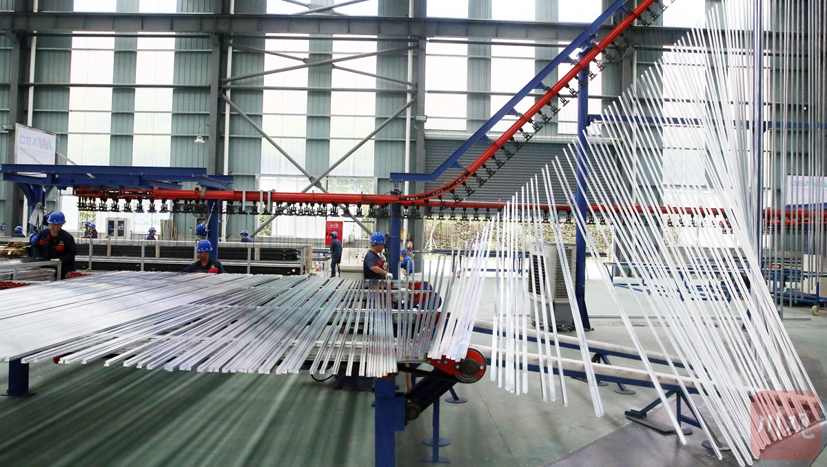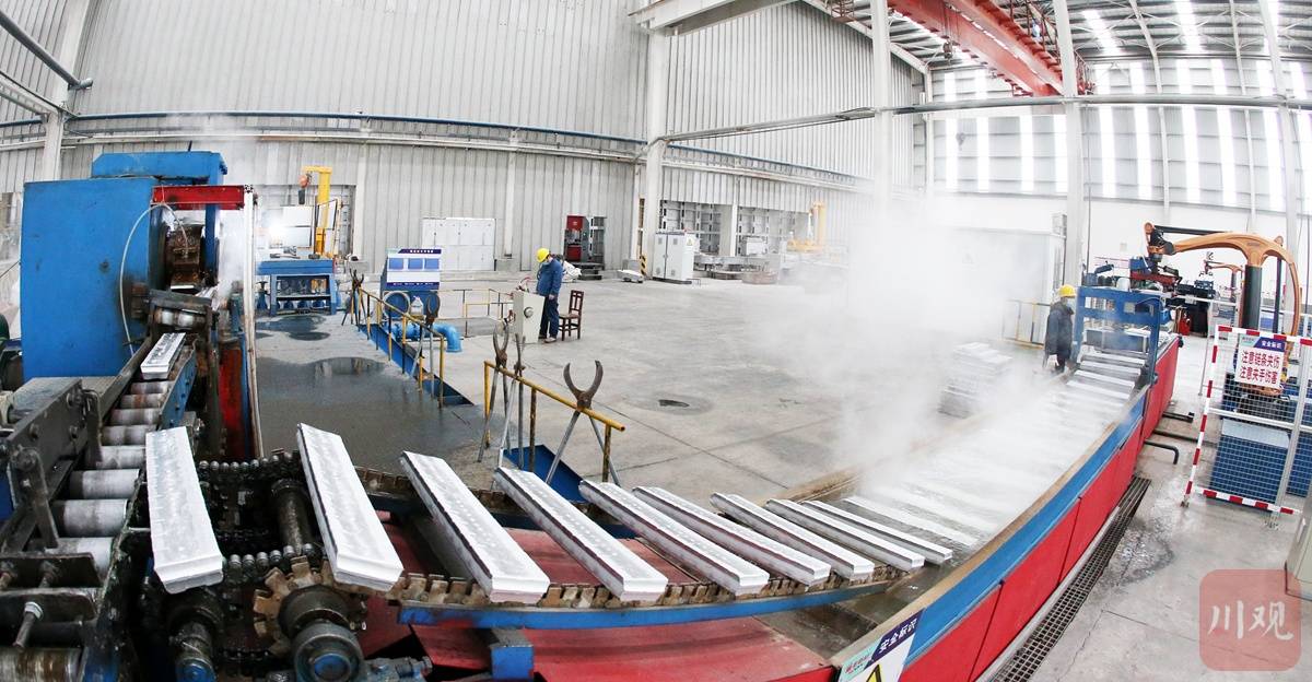 铝锭贸易中心可为铝工业企业提供充足的铝锭原料,助力铝企业发展生产。图为广元市国盛环保科技有限公司生产车间,工人正在生产铝材。唐彪 摄
