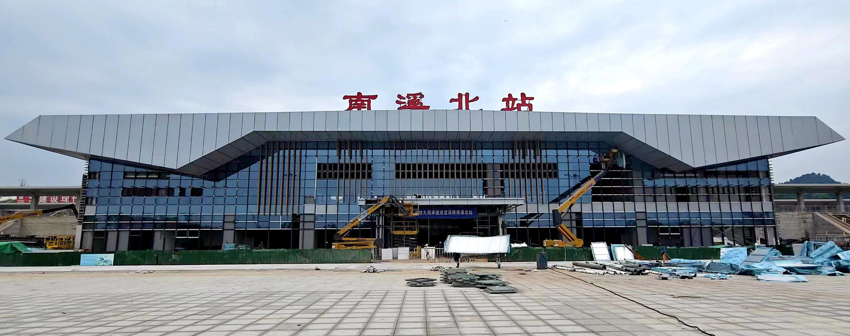 位于宜宾市南溪区境内的南溪北站,站房建筑面积为2956平方米,站房整体建筑以“斑驳竹影,壮美大观”为设计理念,提取了竹节的意向,营造了斑驳的光影效果,产生了优美的律动感。
