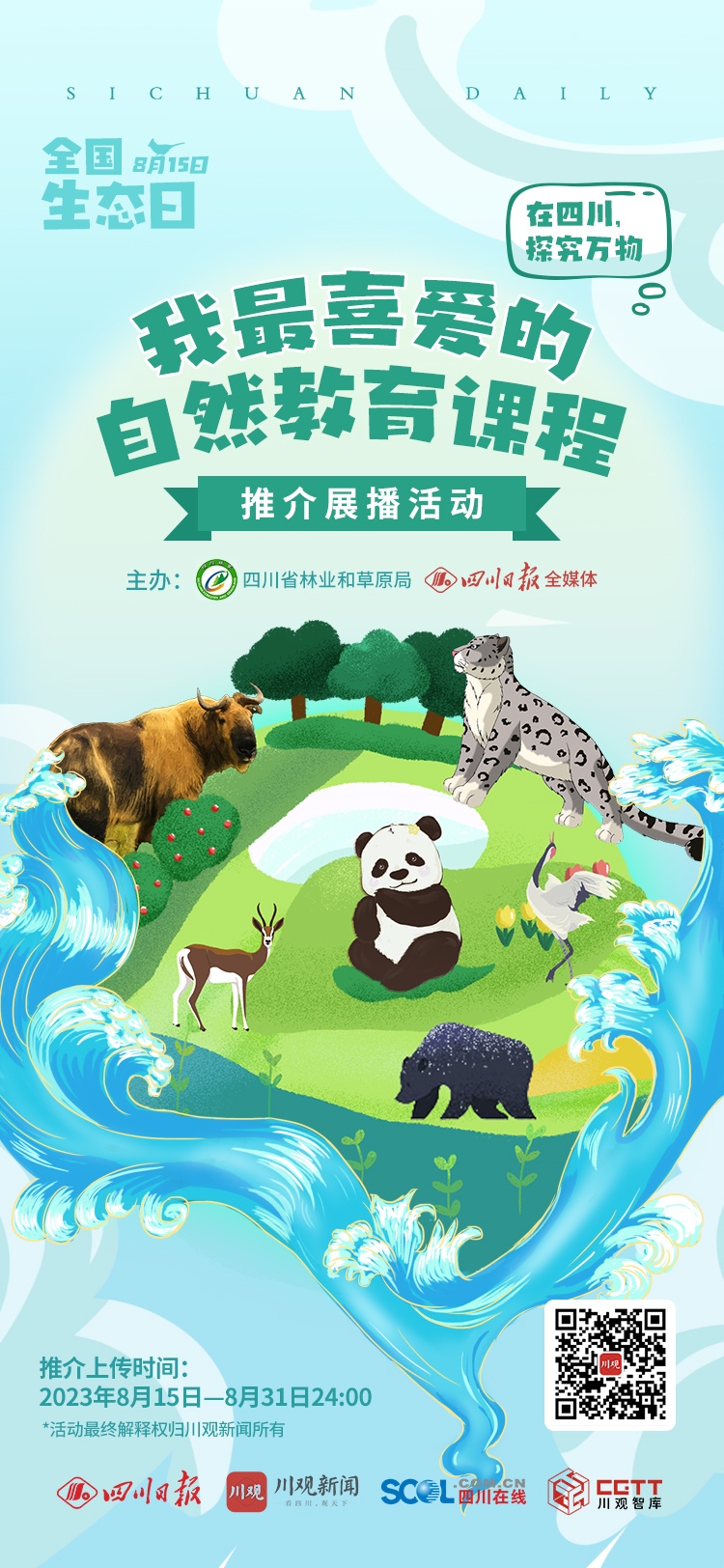 在首个全国生态日之际,四川省林业和草原局(大熊猫国家公园四川省管理局) 联合四川日报全媒体,共同开展“我最喜爱的自然教育课程”推介展播活动,计划通过展示一批优质自然教育线路,筛选若干精品自然教育课程。