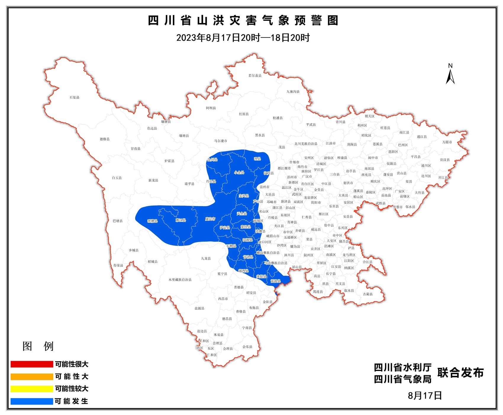 8月17日17时,四川省水利厅、四川省气象局联合发布山洪灾害蓝色预警。这是继昨日针对17县(市、区)发布山洪灾害蓝色预警后,我省再一次发布山洪灾害蓝色预警。