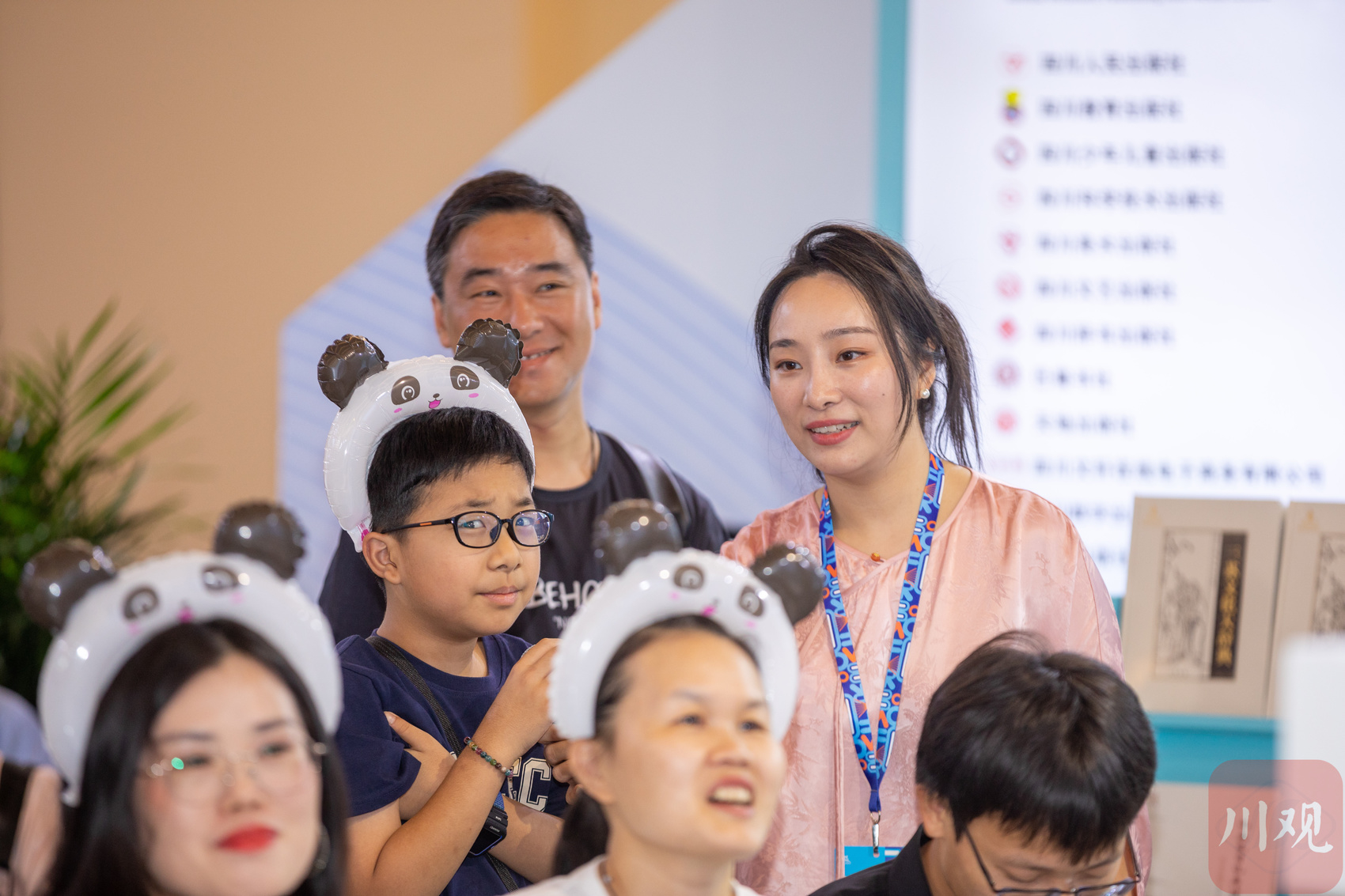 活动现场,除了人手一册《熊猫花花》,熊猫气球、熊猫发卡、熊猫玩偶也很吸睛,无论男女老少都装扮着,与蒋林热情互动。