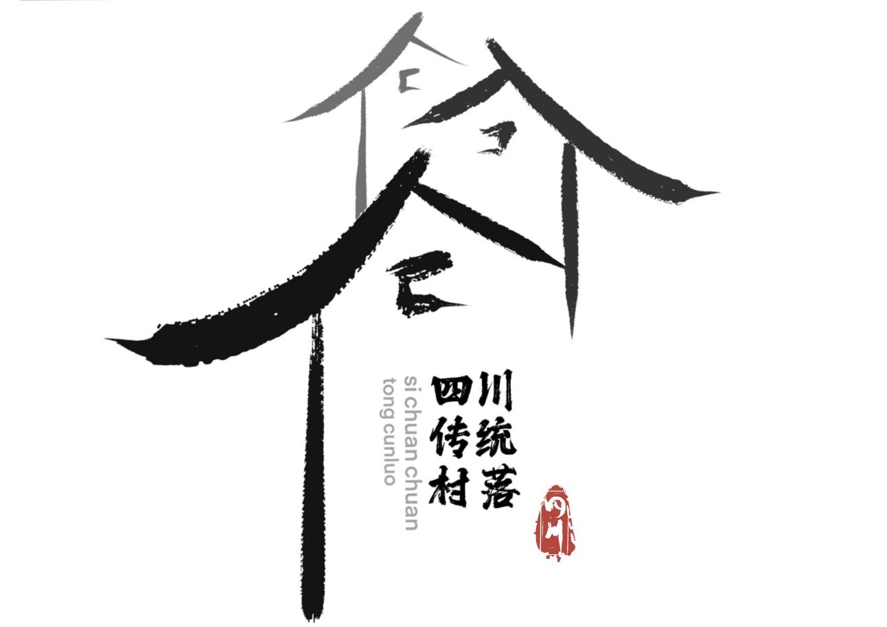 【设计说明】结合四川传统村落的建筑特点,通过水墨书法的形式表现,以纵向延伸的排列方式来表现传统村落的积聚感,再通过墨色的浓淡来表现本设计的空间感,体现在丘陵地区中四川传统村落的错落有致、井然有序的意境朦胧之美。