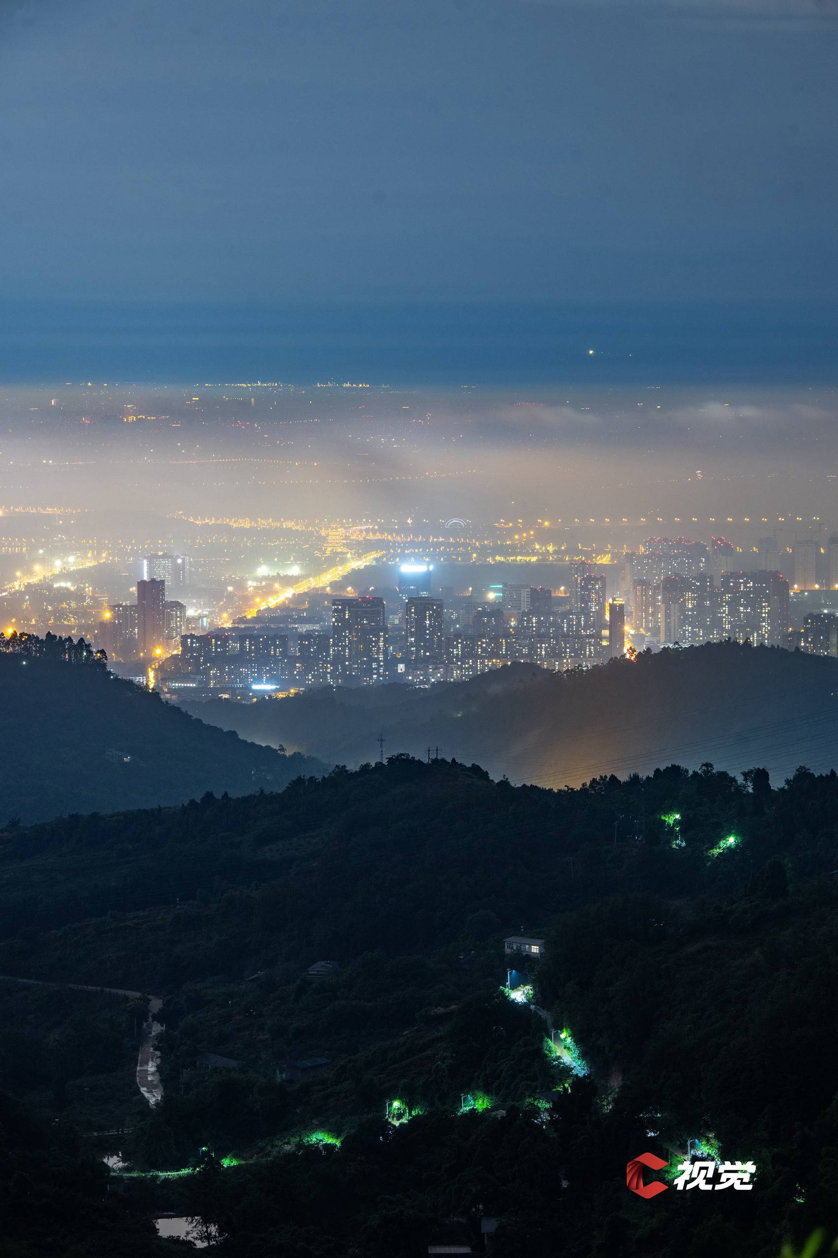 C视觉|龙泉山巅眺望雨后夜成都 宛如海市蜃楼