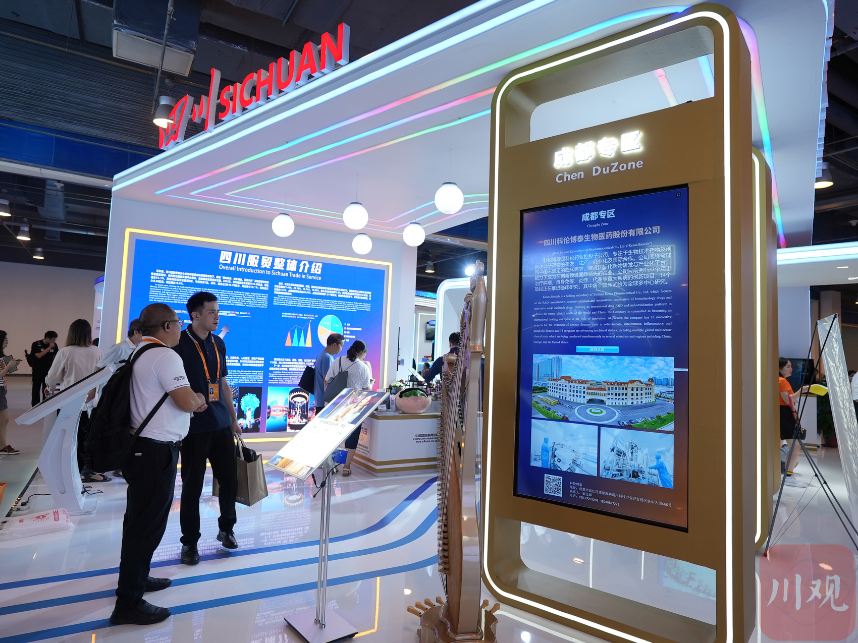 今年服贸会专门设置了中国服务贸易成就展专区,回顾10年来中国服务贸易发展成就。四川科伦博泰生物医药股份有限公司和东方电气集团东方汽轮机有限公司的展品入选十年成就展展区。