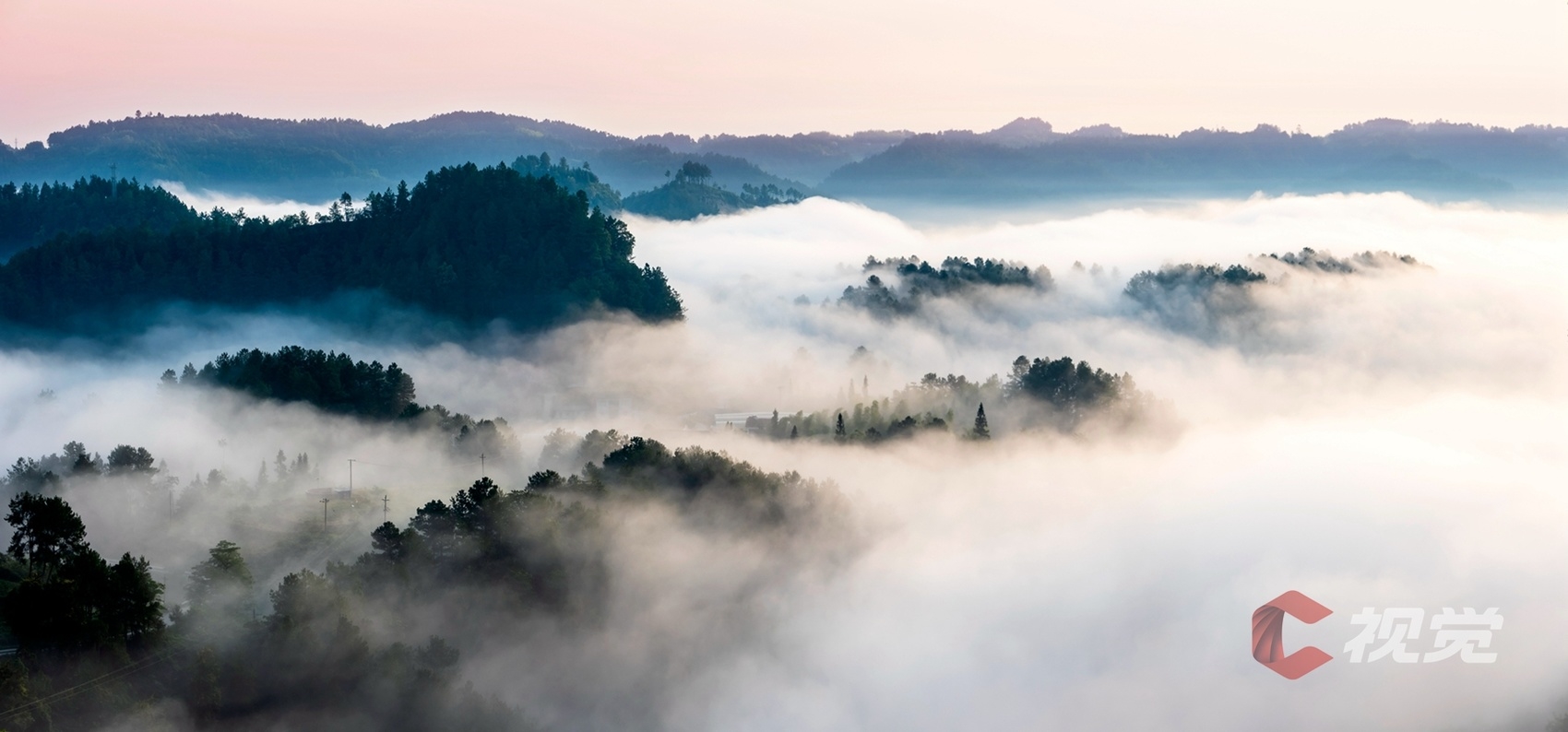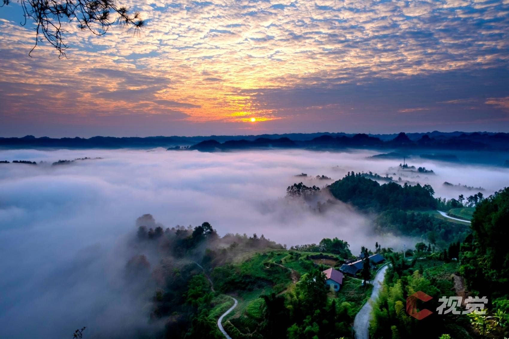9月2日清晨,云海、朝霞、日出将内江市威远县骑龙坳装扮得十分秀美靓丽,犹如一幅幅美丽的水墨丹青呈现在眼前。