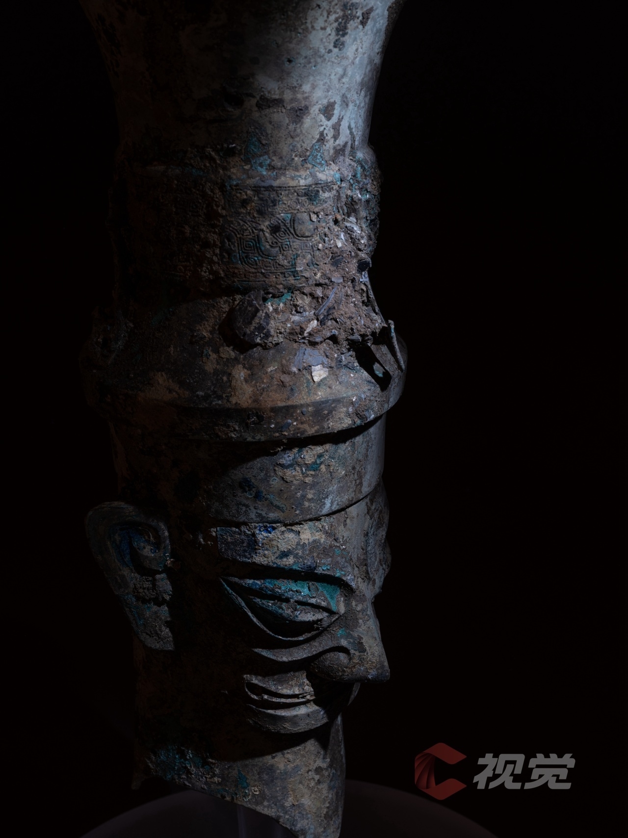 提取后的青铜顶尊人头像,还带着它斑驳的印记。