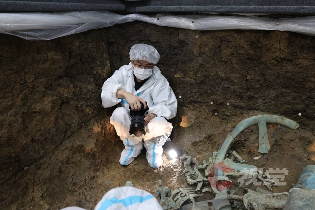 “最开始,我很畏难,不知道怎么拍,一直拖着没有去。网上拍文物的照片很多,但考古发掘这个拍摄题材能借鉴的就很少,面对着这么震撼、这么大型的考古发掘现场,怎么去完美呈现它?很难,太难了。”回忆起最初省考古研究院邀约他拍摄发掘现场时自己的踟蹰,余嘉说,“挺后悔的,他们搭考古工作舱的时候我也没有拍到。”