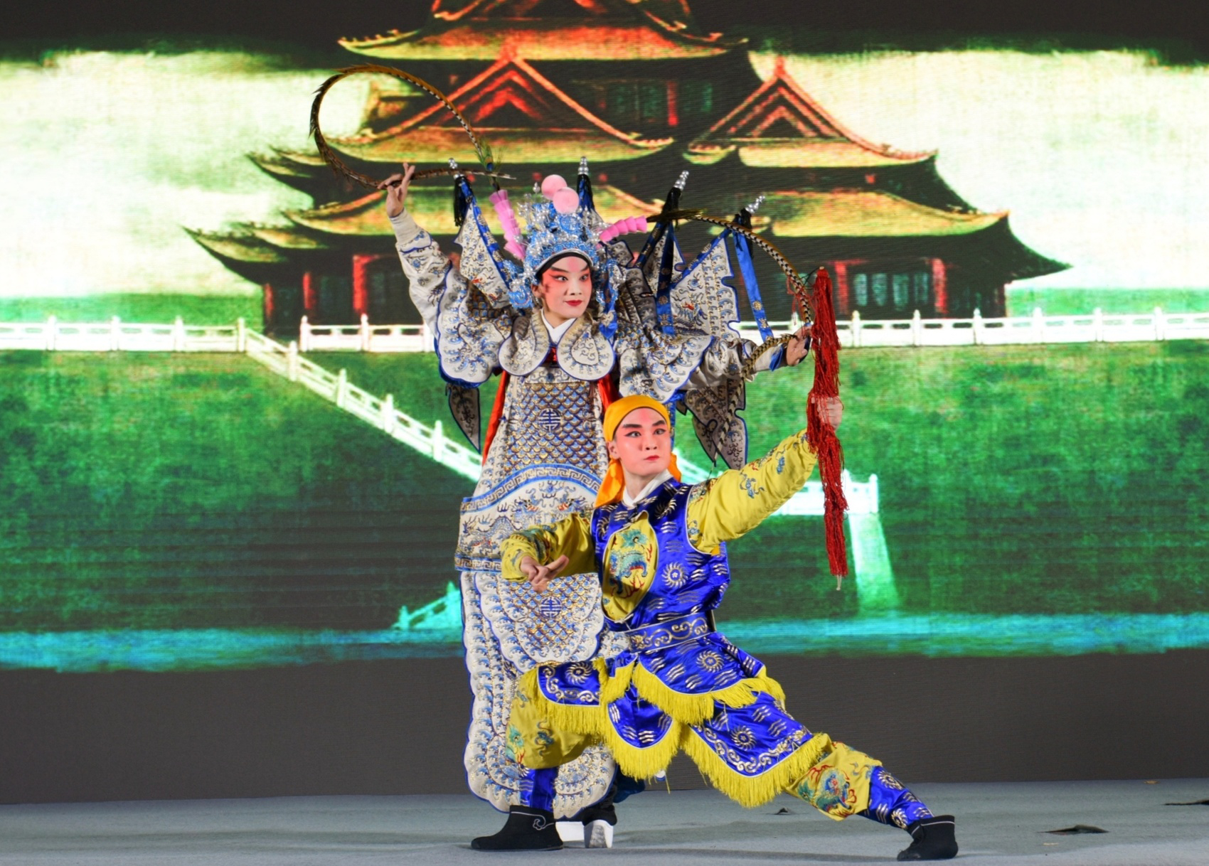作为浙江最具代表性的地方戏曲剧种,越剧当晚演出的剧目是越剧传统保留剧目《打金枝》选段,由绍兴市柯桥区小百花越剧艺术传习中心的吴素英、张琳演出。在这出选段中,两位梅花奖演员珠联璧合,唱腔优美,表演细腻,韵味悠长。婺剧是浙江省第二大地方性剧种,有四百余年的历史,其唱腔古朴、表演粗犷,擅长演历史剧题材,并以演出武戏见长。在本次演出的婺剧《吕布试马》中,演员将通过倒插虎、朝天蹬、摔僵尸等武功技巧展示吕布胆大心细、勇猛过人的大将风度。