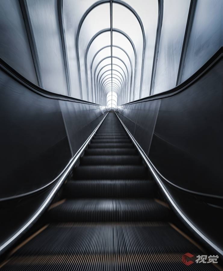 拍摄心得:可以利用电梯的引导线将视觉中心指向画面中心,拍出充满冲击感的电梯。