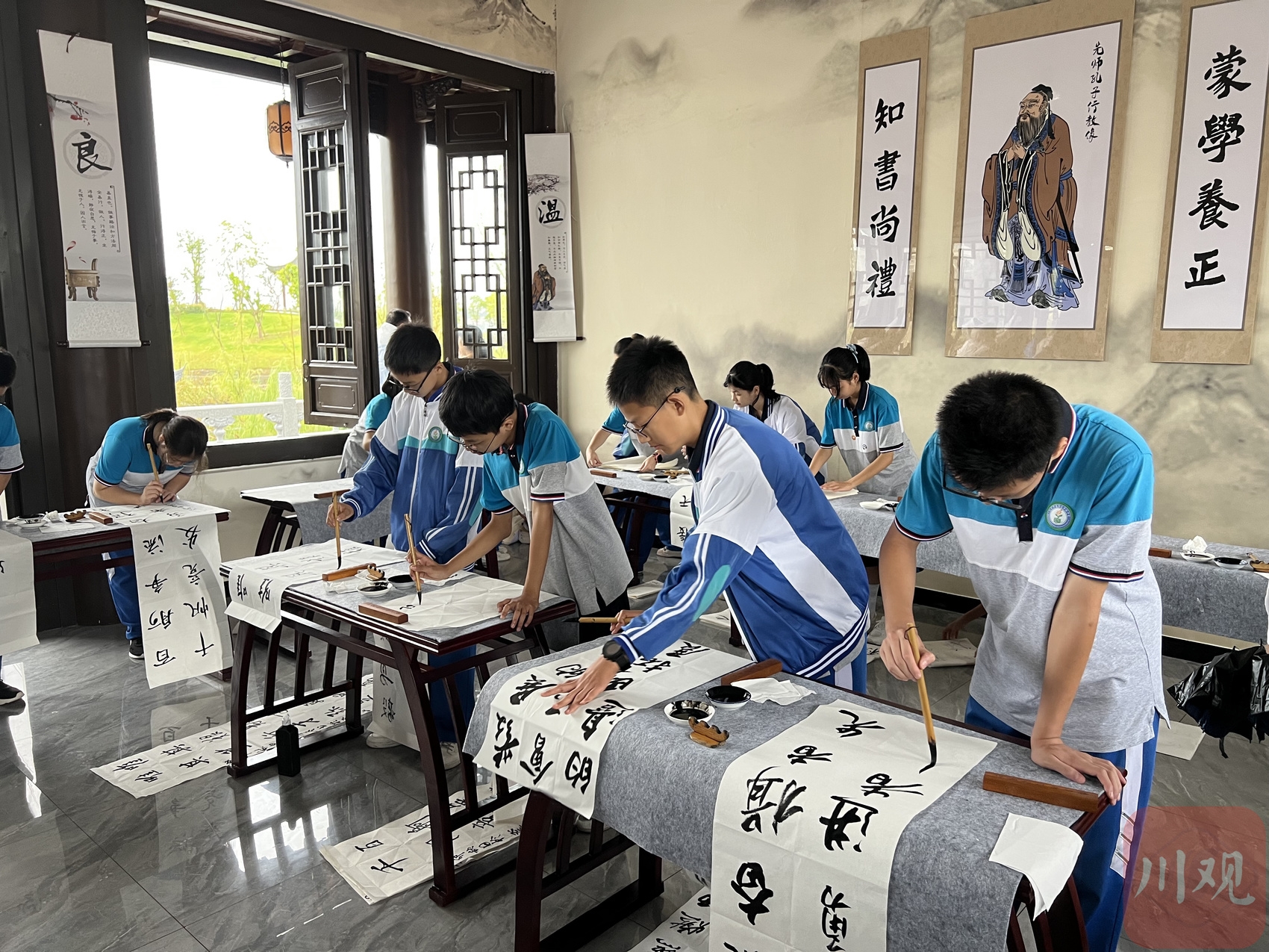 活动现场,来自巴中市恩阳区的中小学生为与会人员展示书法。