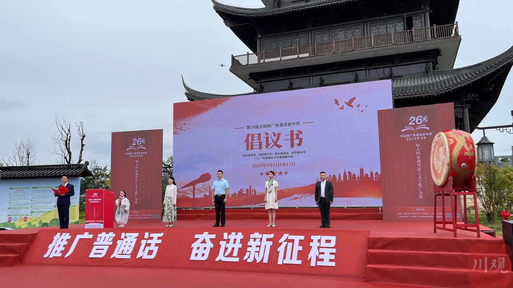 “路漫漫其修远兮,吾将上下而求索……”9月12日上午,伴随着巴中市恩阳区中小学生诵读《离骚》的朗朗书声,第26届全国推广普通话宣传周四川省启动仪式在巴中市恩阳区登科公园拉开帷幕。