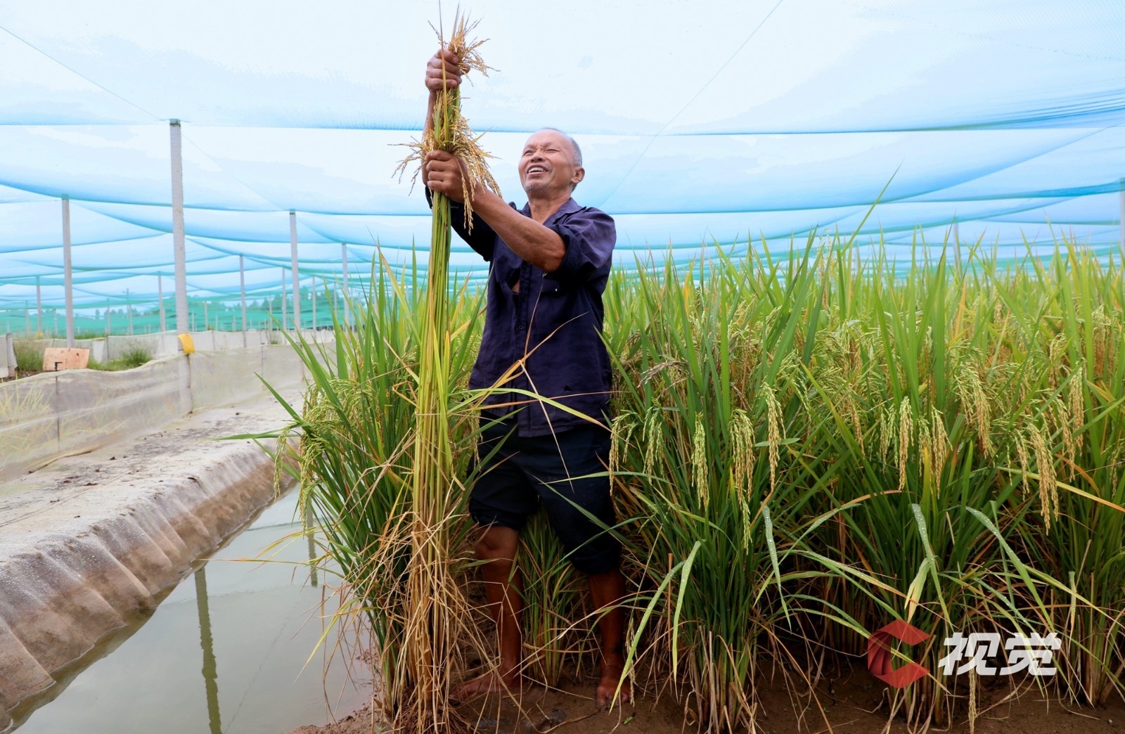 8月30日,仁寿县珠嘉镇花园社区的巨型水稻种植基地,试种的580亩巨型稻喜获丰收。巨型稻植株高,茎秆粗壮,穗长粒多,还能在禾下养蛙、养鱼、养虾、养鸭等。C视觉摄影师 潘建勇 摄