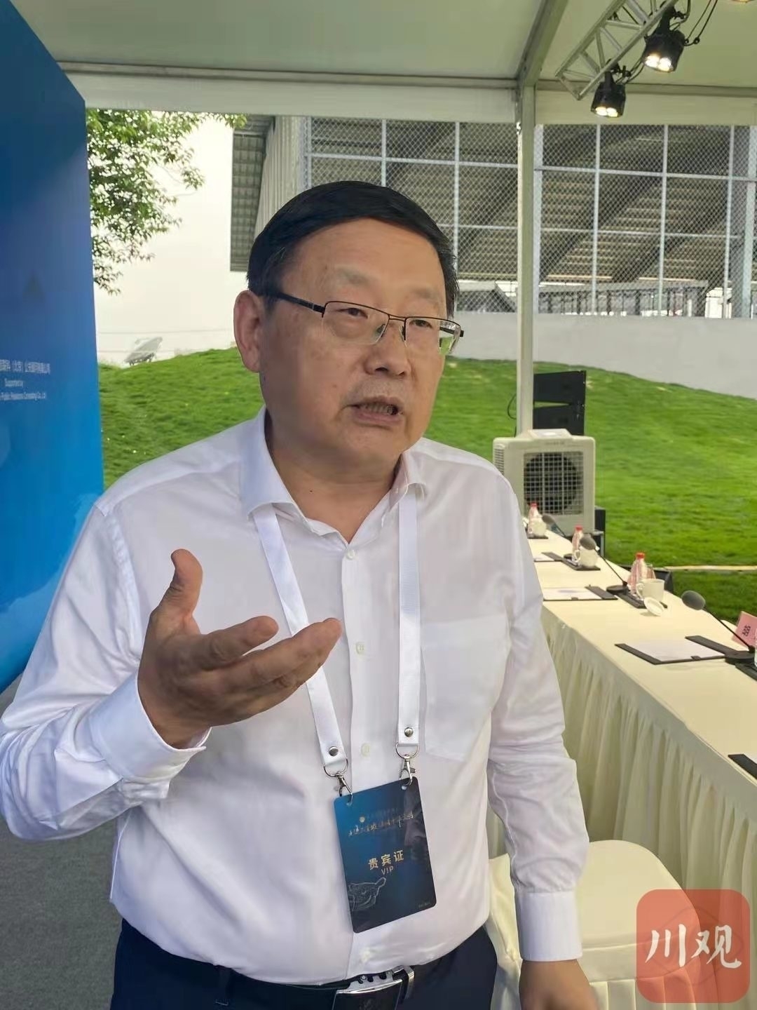 2021年5月28日,中华文化全球推广三星堆推介会在广汉举行。王巍接受四川在线记者采访。
