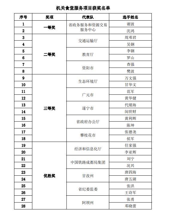 9月15日,记者从四川省机关事务管理局获悉,昨日(9月14日)四川省第一届机关服务技能竞赛在成都闭幕。经过为期三天的激烈角逐,21个市(州)代表队、28个省直部门代表队的367名参赛选手,通过理论测试、现场问答、实操测评、场景模拟等形式,最终2项团体项目分别产生一等奖1名,二等奖3名,三等奖5名;4项个人项目共产生一等奖4名,二等奖11名,三等奖19名。