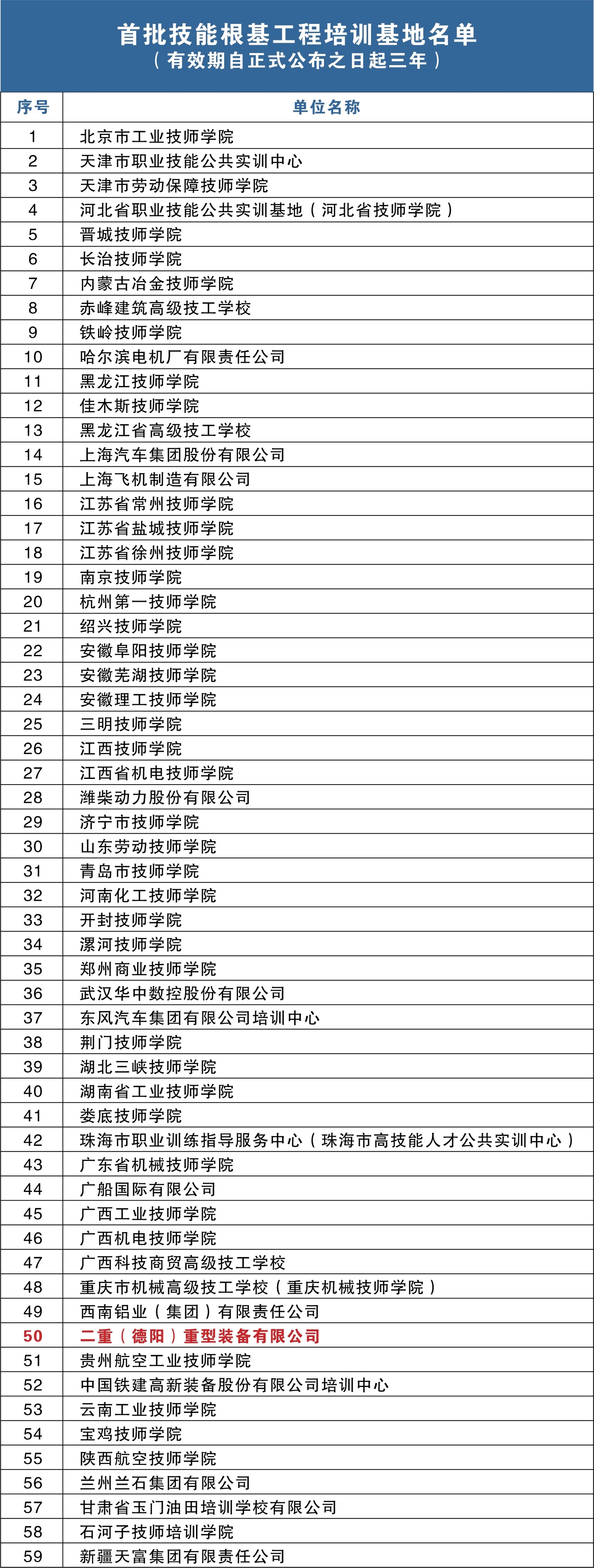 9月19日上午,四川在线记者从国机重型装备集团股份有限公司(以下简称“国机重装集团”)获悉,9月11日,人力资源和社会保障部发布了首批59家国家技能根基工程培训基地公示名单,其中,位于四川德阳的国机重装集团下属企业二重(德阳)重型装备有限公司(以下简称“二重装备”)成功入选,该企业也是四川省唯一一家入选单位。