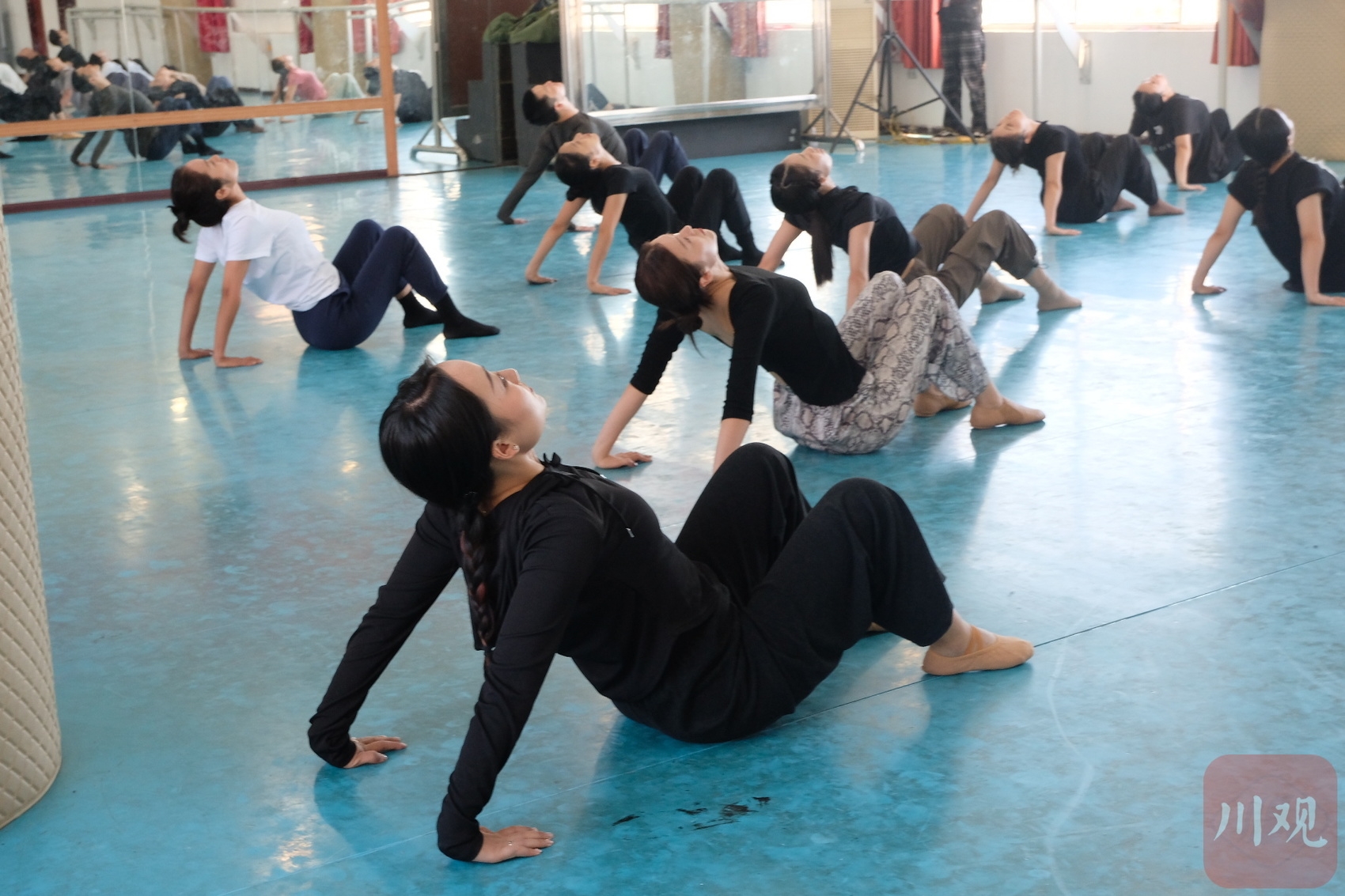 在离铁牛广场不远处的绵阳市艺术剧院练功房内,中国舞蹈家协会理事、国家一级演员张志正为学员们轻言细语地授课,课程从”规范、引领、创造”的角度,唤醒学员的身体和思维。他根据学员的身份订制授课内容,来自四川各地的舞蹈演员、舞蹈青年教师、文化馆工作人员参加了这场别开生面的舞蹈大师课。