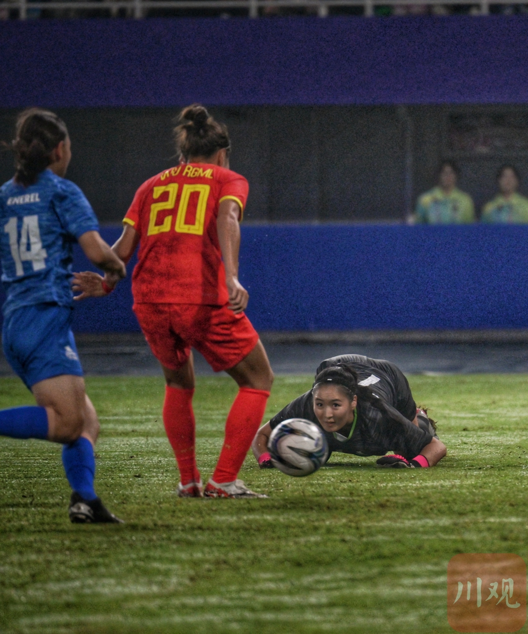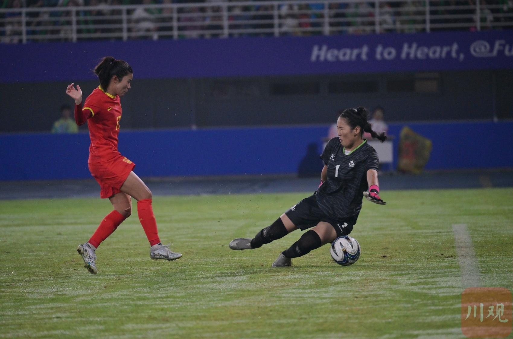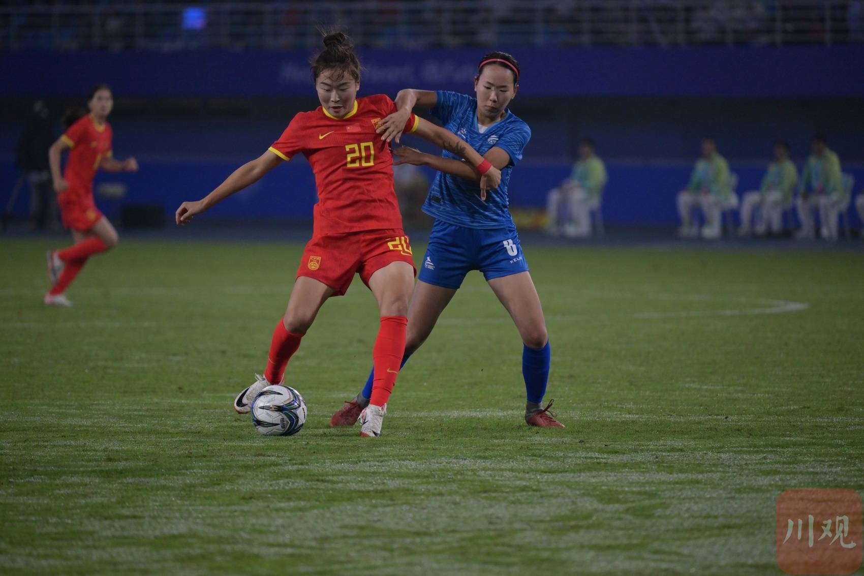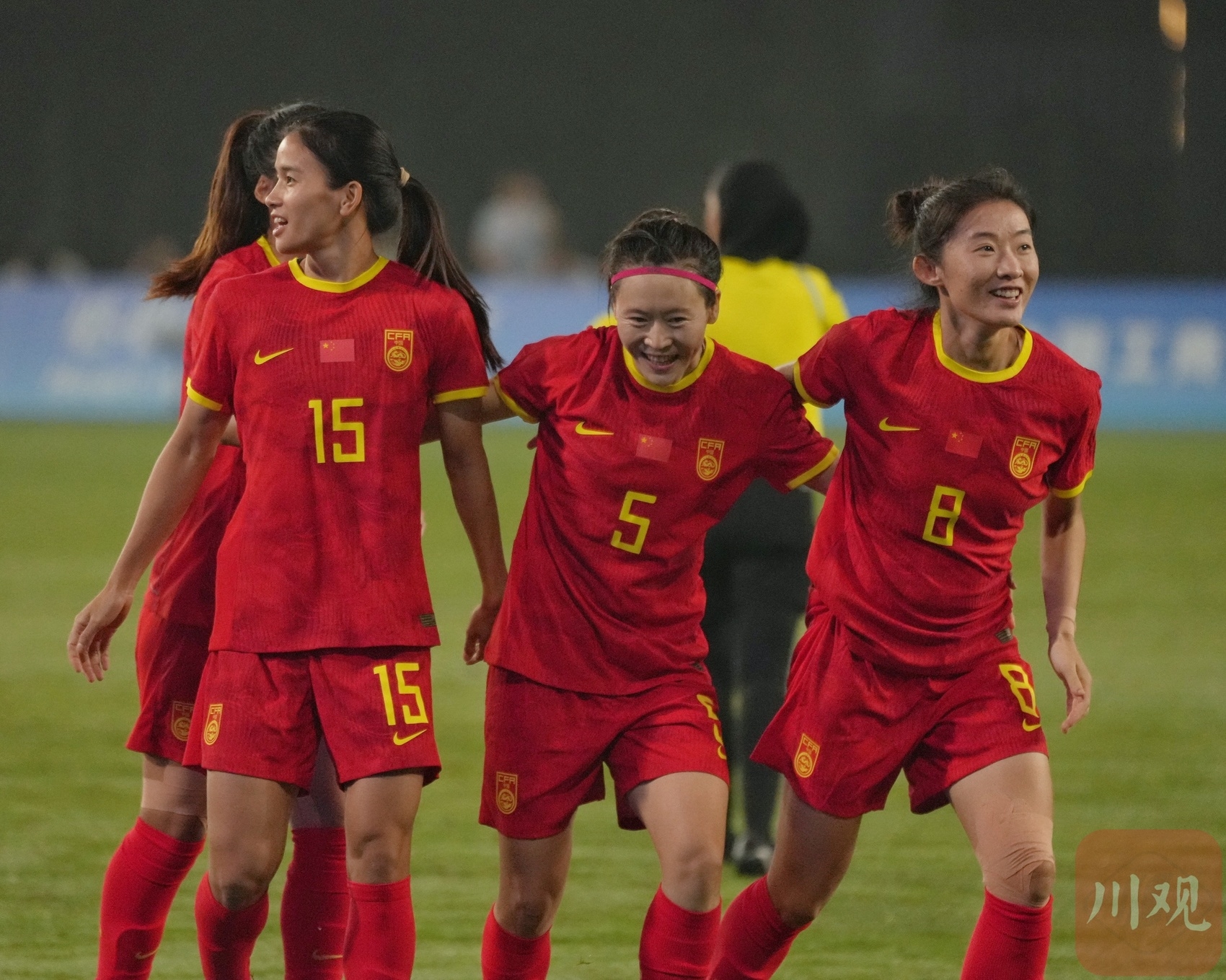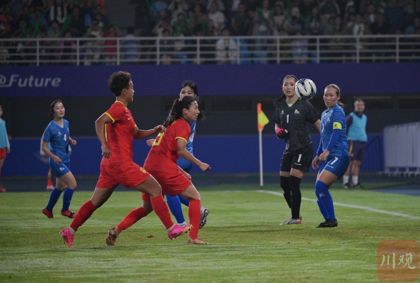 观众现场为女足姑娘加油。