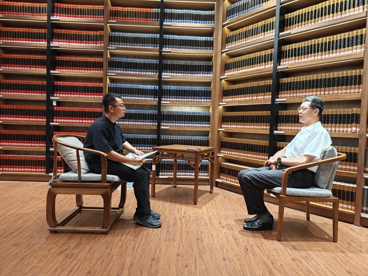 7月17日,邢广程接受了四川日报全媒体“文化传承发展百人谈”记者的专访。经过精心选择,采访地点为中国历史研究院图书档案馆的四库全书阅览室,这里存放着《四库全书》《续修四库全书》等相关典籍的影印本。