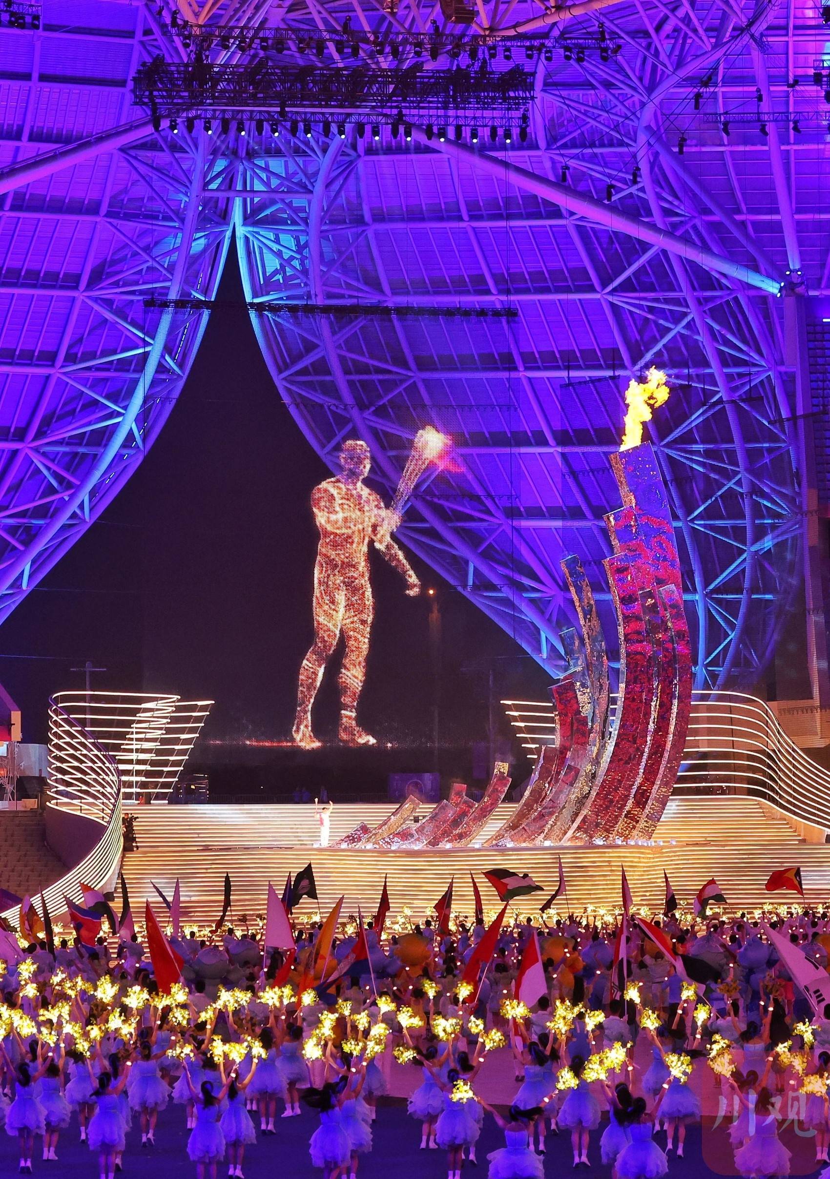 23日晚,在杭州亚运会开幕式现场,由数字火炬手组成的“数字人”与现场最后一棒火炬手,共同点燃杭州亚运会主火炬塔。数字世界与现实世界同频共振,让亚运史上首个数字点火仪式真正实现了“我们都是火炬手”的梦想,表达共建亚洲命运共同体的美好愿望。