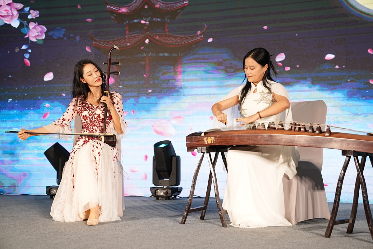 在联谊活动的现场,由四川省侨青委委员杨舒及其发起的麋鹿艺术团还带来了精彩的文艺演出,通过声乐演唱、器乐演奏和传统武术表演等,共同演绎出中国传统文化的独特风采,传递中秋佳节所蕴含的思乡之情以及祝福团圆的美好情感。
