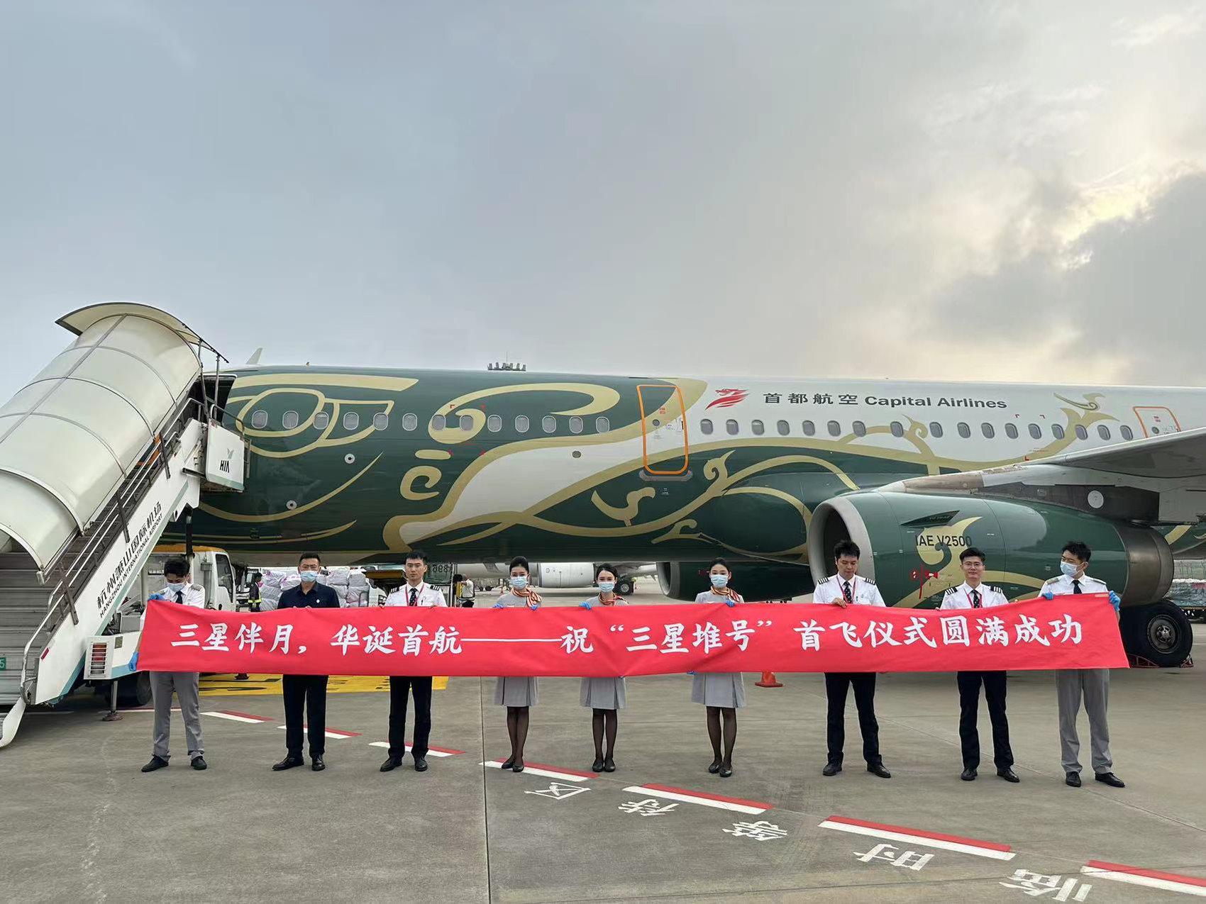 “三星堆号”主题飞机由海航航空集团旗下的首都航空与三星堆博物馆联合打造,以A321飞机为载体,以三星堆文化元素为主要视觉形象,旨在打造一座移动的空中三星堆博物馆,沉浸式展示三星堆文化底蕴,向世界亮出三星堆这张文化名片、展示中国历史的灿烂辉煌。