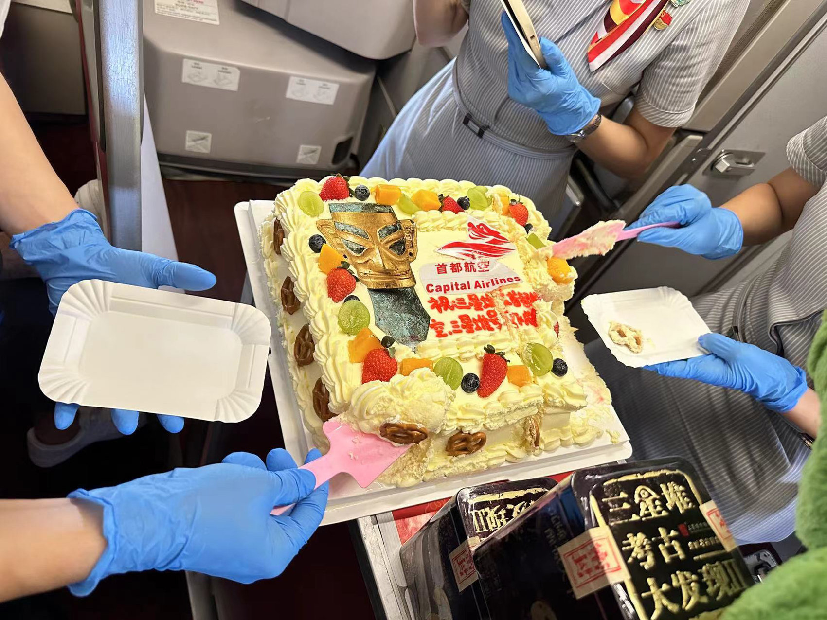 据介绍,“三星堆号”主题航班将主要执行全国至成都的航线,三星堆博物馆的金牌讲解团队还将定期登上“三星堆号”,以文物复刻教具展示、多媒体演示、文创品鉴体验等多元方式,为游客讲述古蜀历史和三星堆文化,打造一座移动的空中三星堆博物馆。