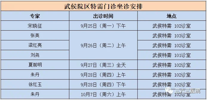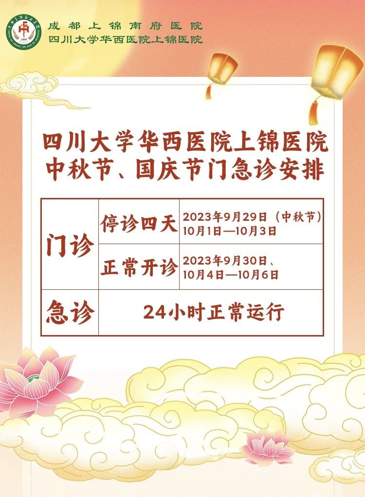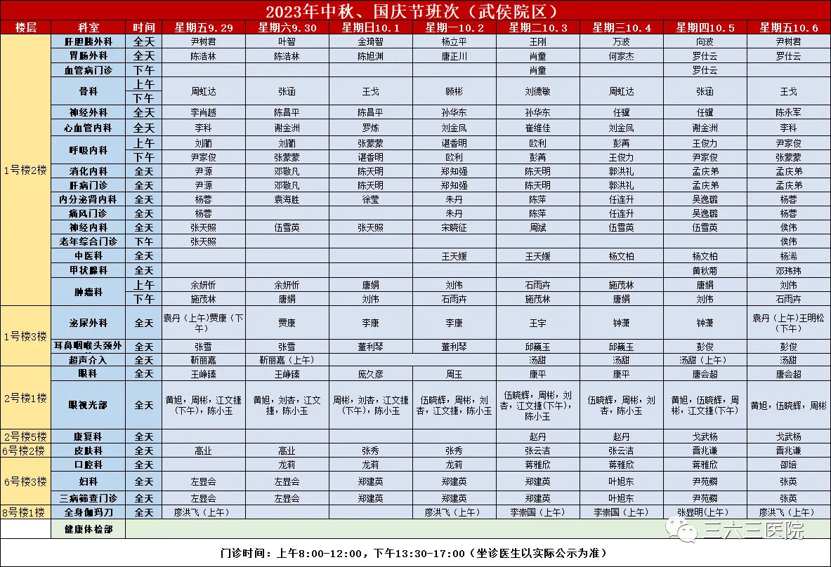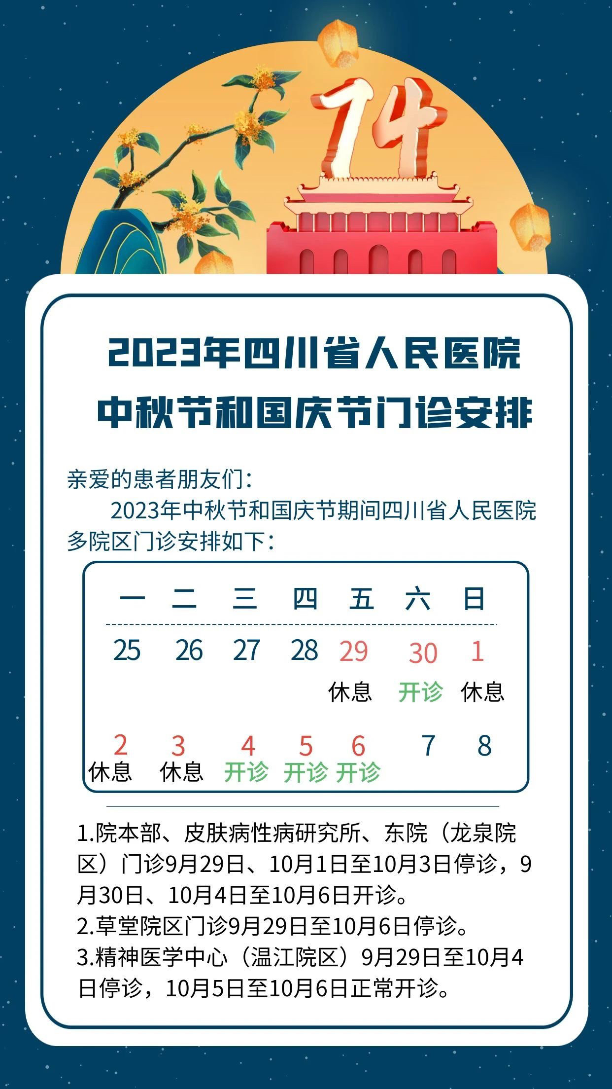 中秋节、国庆节假期(9月29日—10月6日),门诊出诊安排如下: