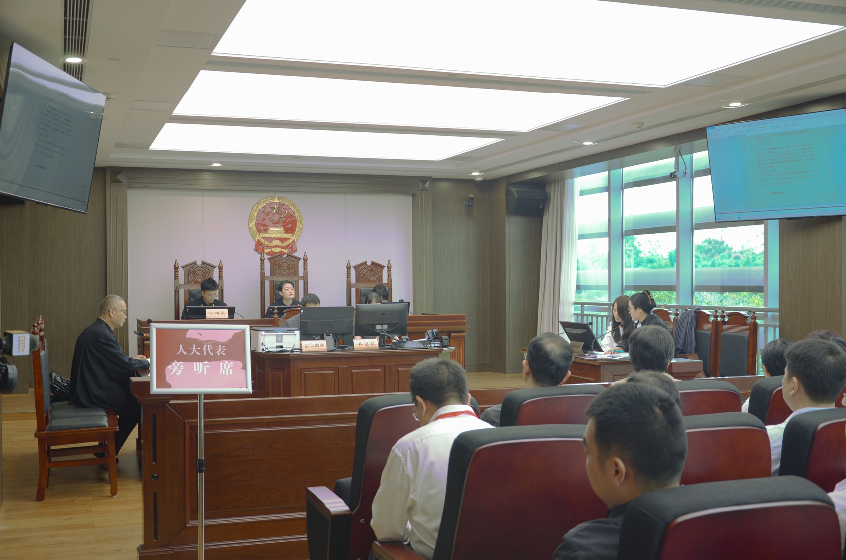 9月27日,受邀人大代表在成渝金融法院成都办公区旁听庭审。 成渝金融法院供图
