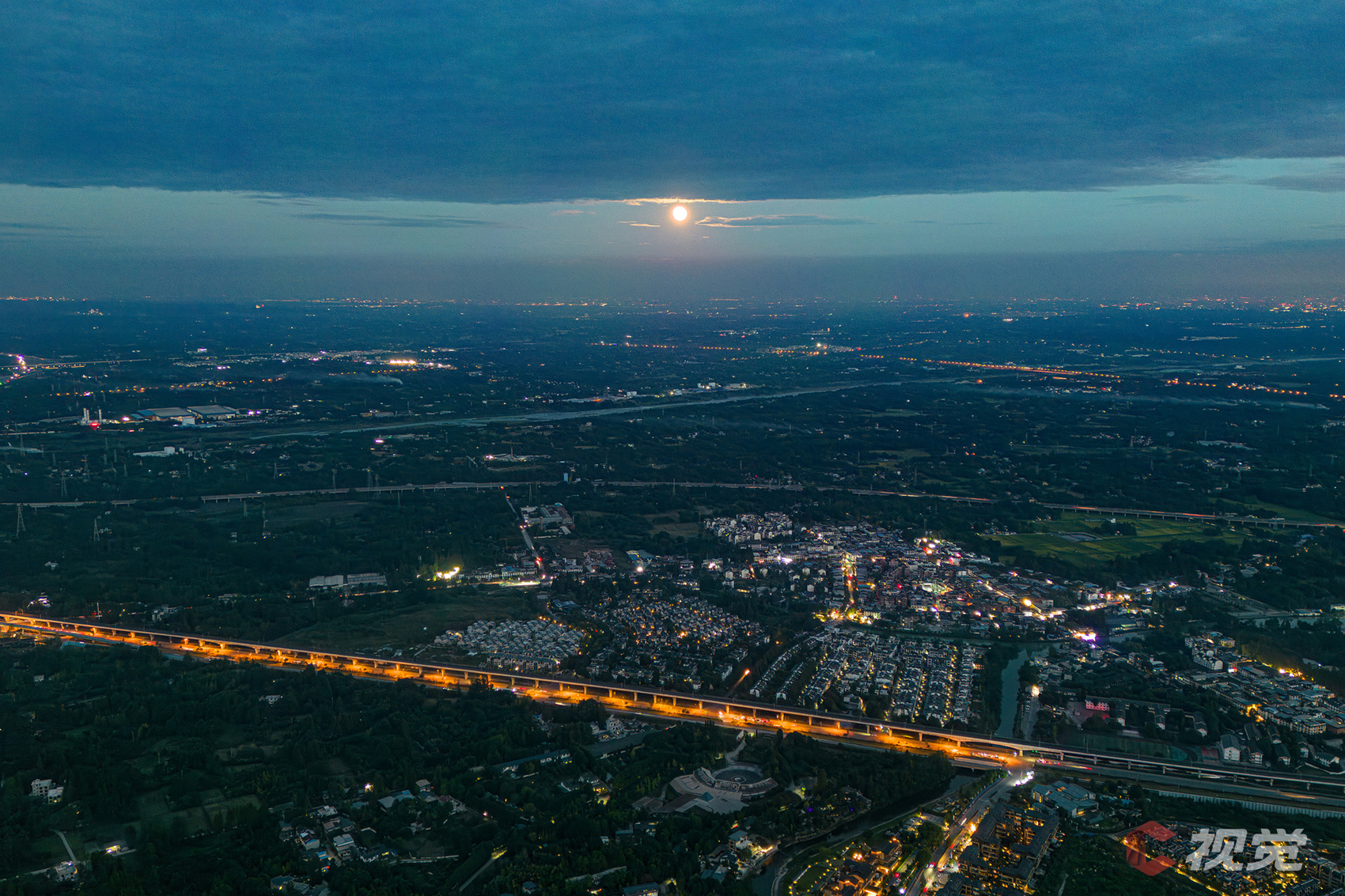 9月29日,成都天府艺术公园·蜀园与“超级月亮”交相辉映、唯美如诗。C视觉摄影师 雷良金 摄
