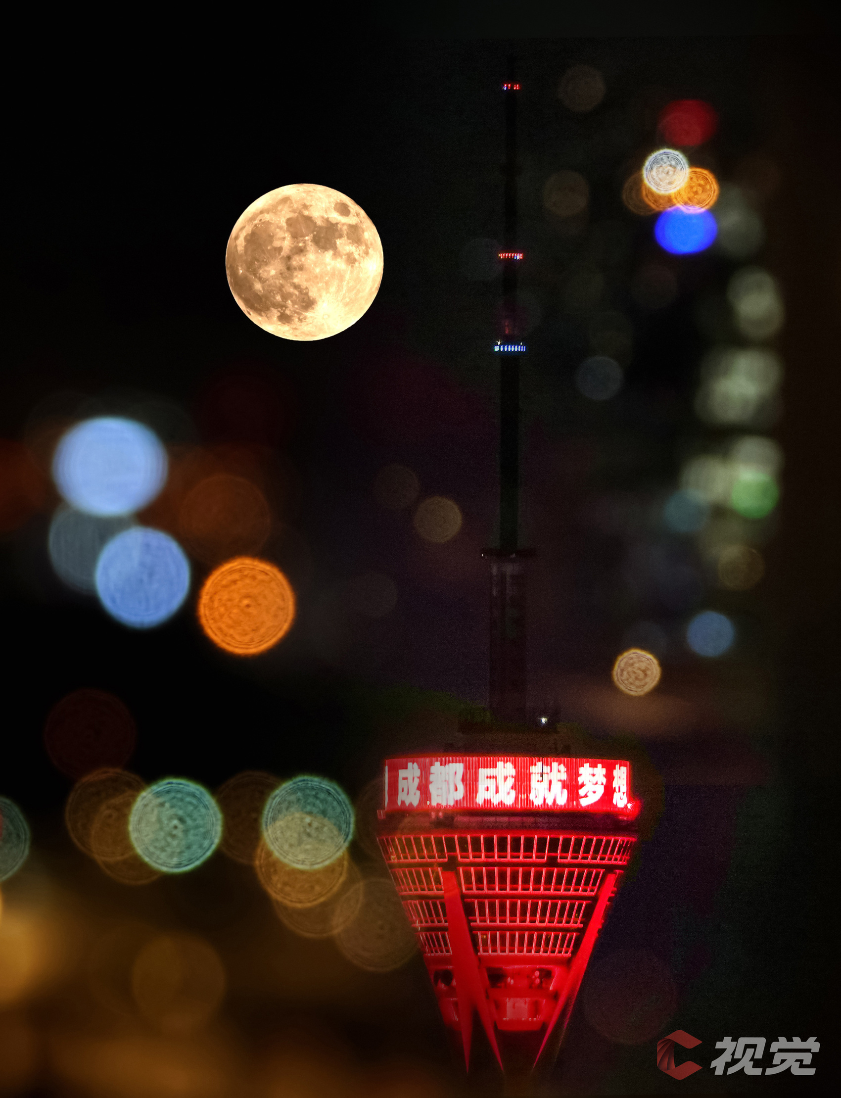 9月29日,中秋夜,一轮明月,悬挂于成都城市上空。C视觉摄影师 邓显杰 摄