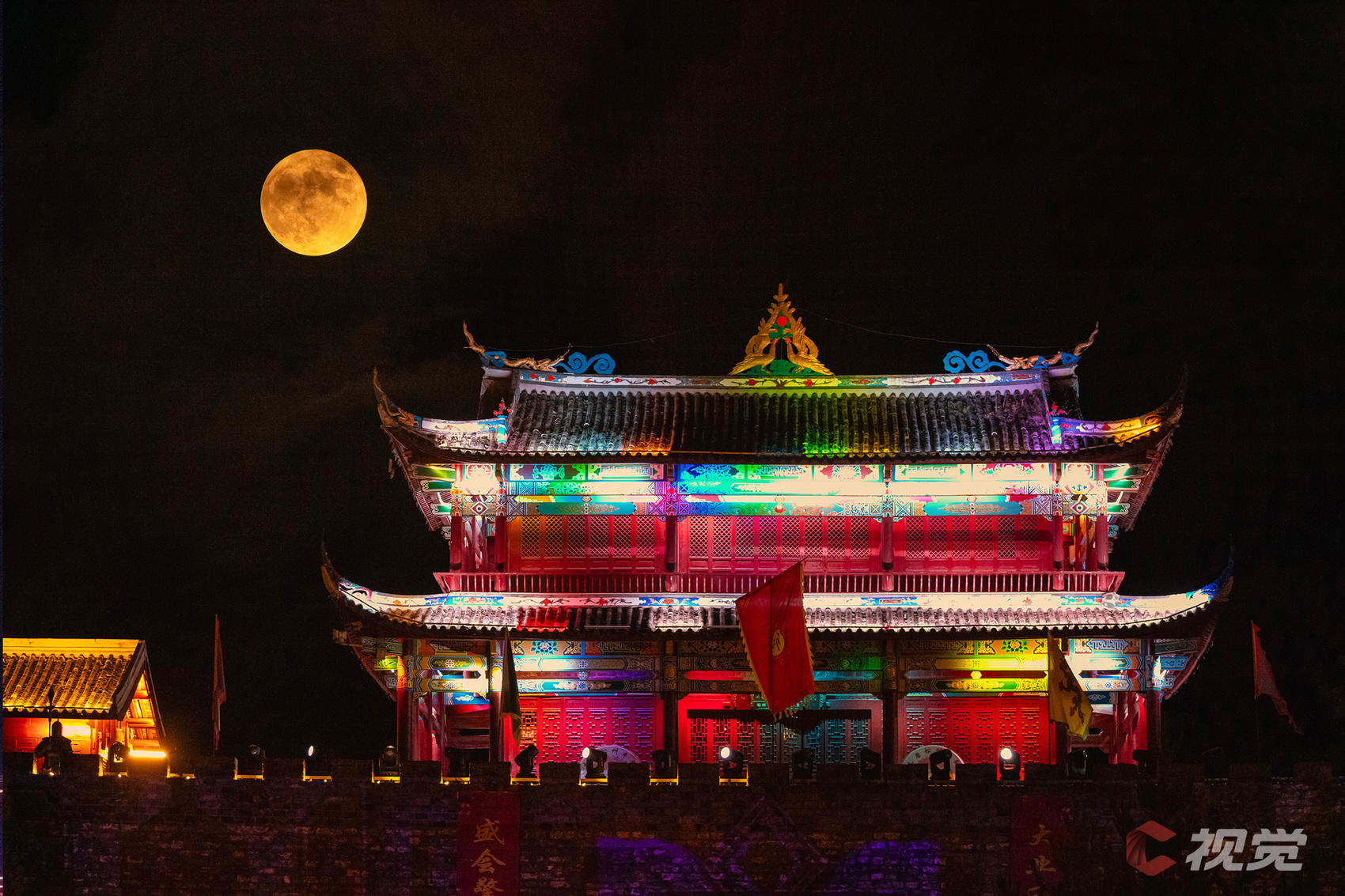 9月29日,“超级月亮”照耀下的松潘县松州古城。C视觉摄影师 龙永俊 摄