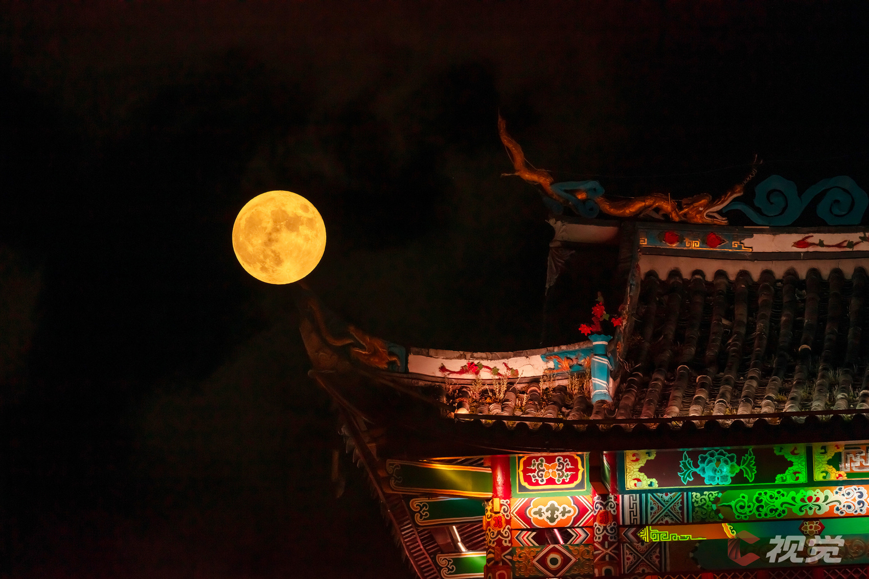 9月29日晚,中秋之夜,眉山市洪雅县柳江古镇的圆月。C视觉摄影师 王鸿飞 摄