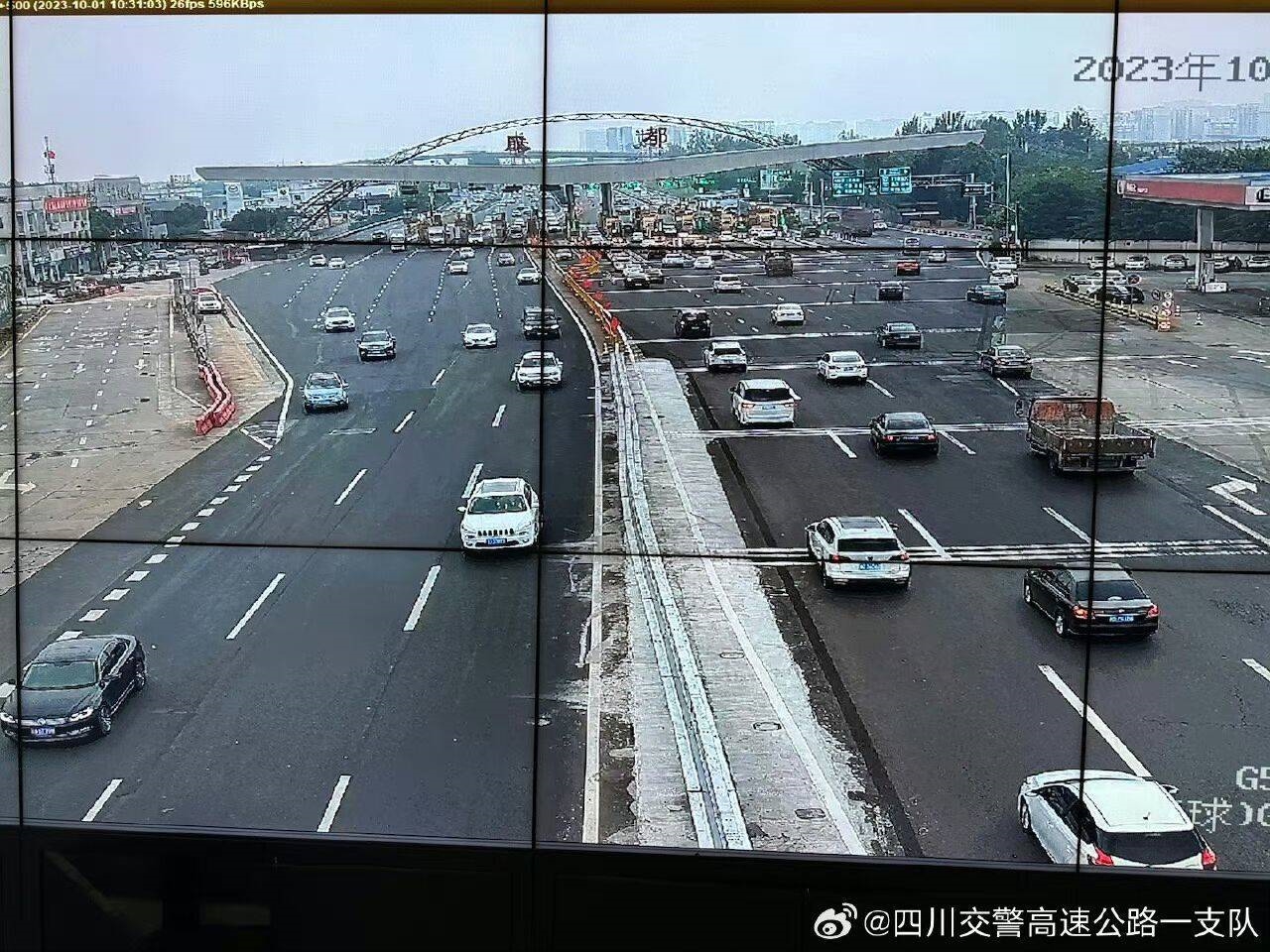 10月1日,中秋国庆假期第三日,记者从四川高速公安一分局获悉,截至上午10时35分,该分局辖区成都周边高速部分路段因车流量大出现排行情况(出城方向)。