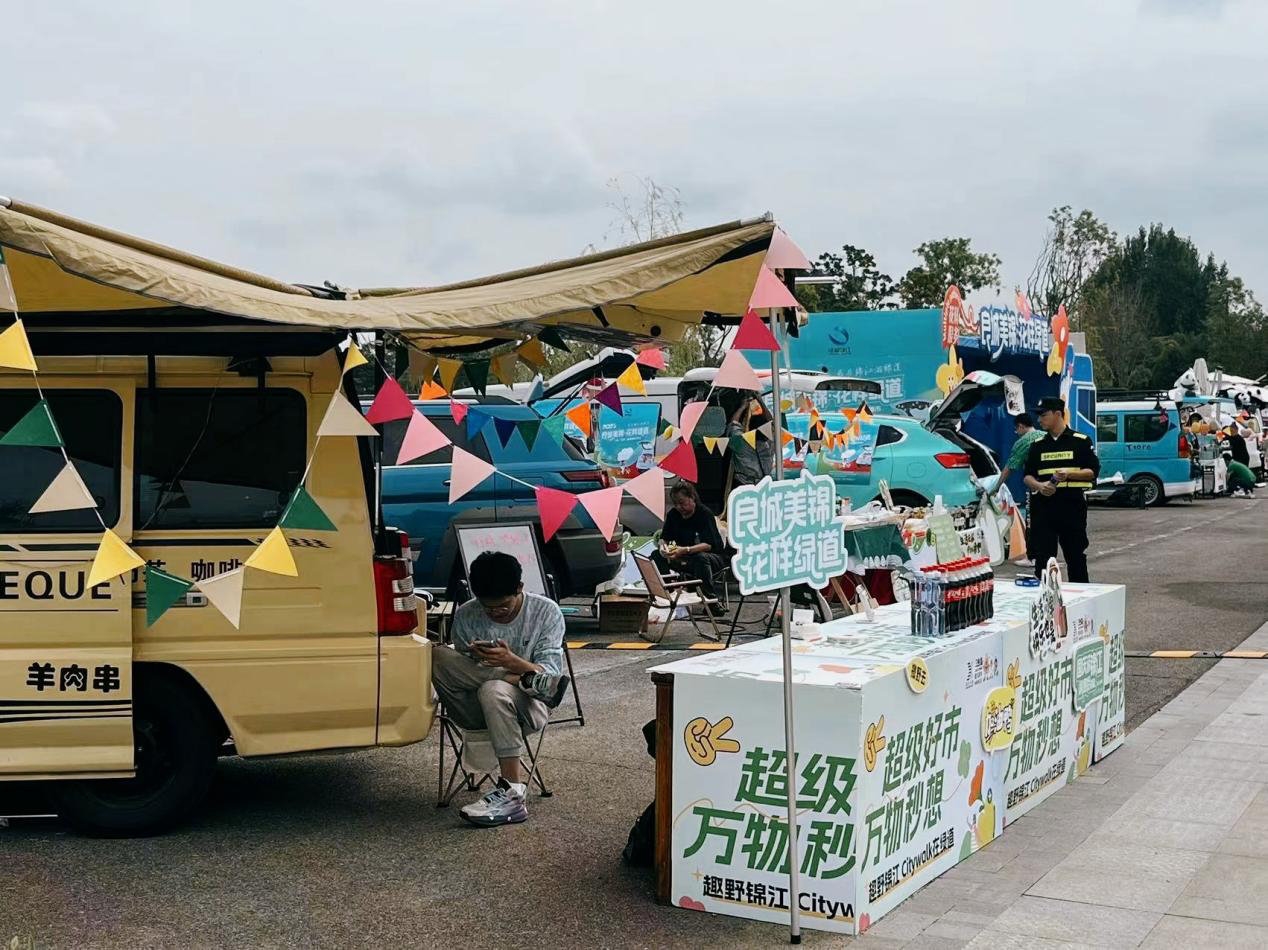 江家艺苑作为锦城绿道上的重要节点,生态富饶,生机盎然。活动现场设置了三大体验区,其中包括“花样”锦江鲜花集市区、“花样”天幕露营solo区和“花样”后备箱露天集市区,打造“充满市井烟火气息+畅享自然生态”的消费新场景。